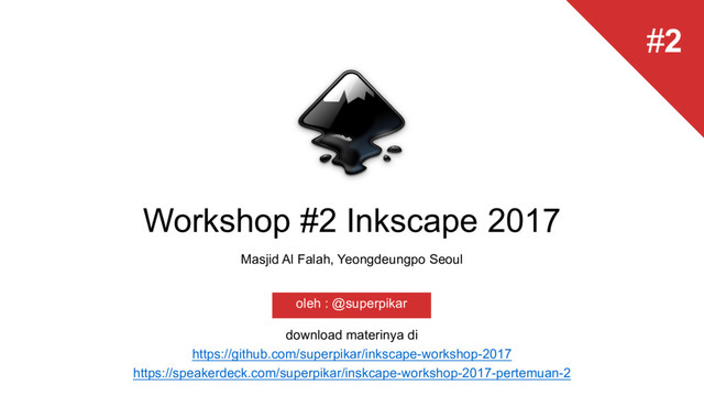 materinya di https://github.com/superpikar/inkscape-workshop-2017 https://speakerdeck.com/superpikar/inskcape-workshop-2017-pertemuan-2 oleh : @superpikar #2