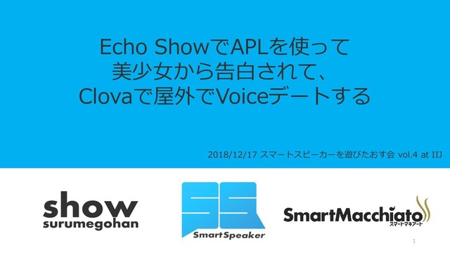 2018/12/17 スマートスピーカーを遊びたおす会 vol.4 at IIJ Echo ShowでAPLを使って 美少女から告白されて、 Clovaで屋外でVoiceデートする 1