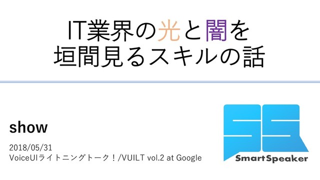 IT業界の光と闇を 垣間見るスキルの話 show 2018/05/31 VoiceUIライトニングトーク!/VUILT vol.2 at Google