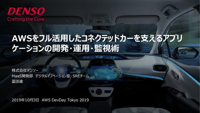Engineering Research & Development © DENSO CORPORATION All Rights Reserved. ご参考:使⽤しているツールやサービスについて 33 v ソースコード管理:Bitbucket(Git) (⾔語はTerraform, shell script, Python) v アカウント管理: Keycloak v DNS: Amazon Route 53 v CDN: Amazon CloudFront v Firewall: AWS WAF v 証明書管理: AWS Certificate Manager v DB: Amazon Aurora(Mysql 互換) v 静的コンテンツ管理: Amazon S3 v Application デプロイ:Elastic Beanstalk (Dockerプラットフォームを使⽤) v コンテナ管理︓ Amazon Elastic Container Registry v 監視: Amazon CloudWatch, AWS CloudTrail, AWS Config,Amazon GuardDuty AWS Trusted Advisor, Zabbix v 通知:Slack, AWS Lambda