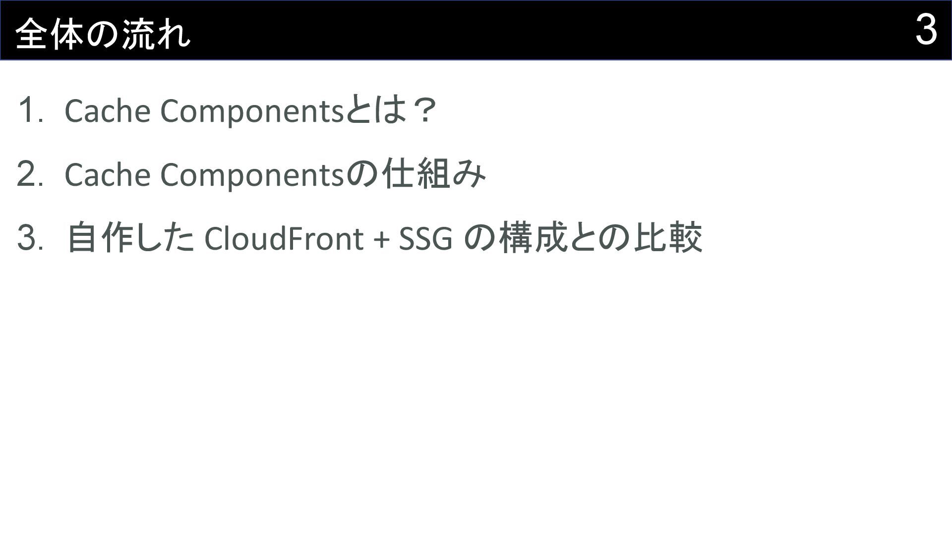 3 全体の流れ 1. Cache Componentsとは? 2. Cache Componentsの仕組み 3. 自作した