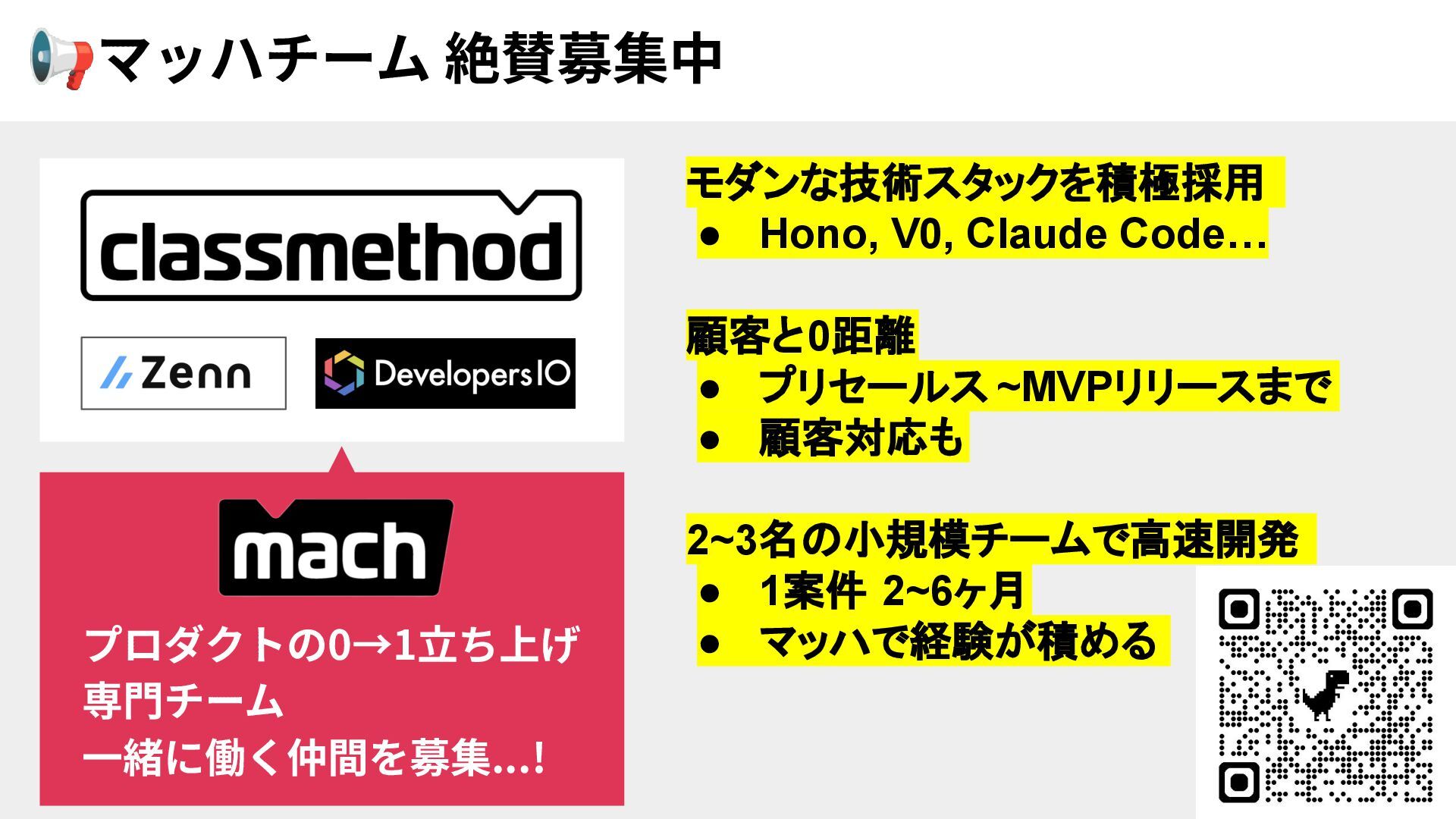 プロダクトの0→1⽴ち上げ 専⾨チーム ⼀緒に働く仲間を募集...! モダンな技術スタックを積極採用 • Hono, V0, Claude Code… 顧客と0距離