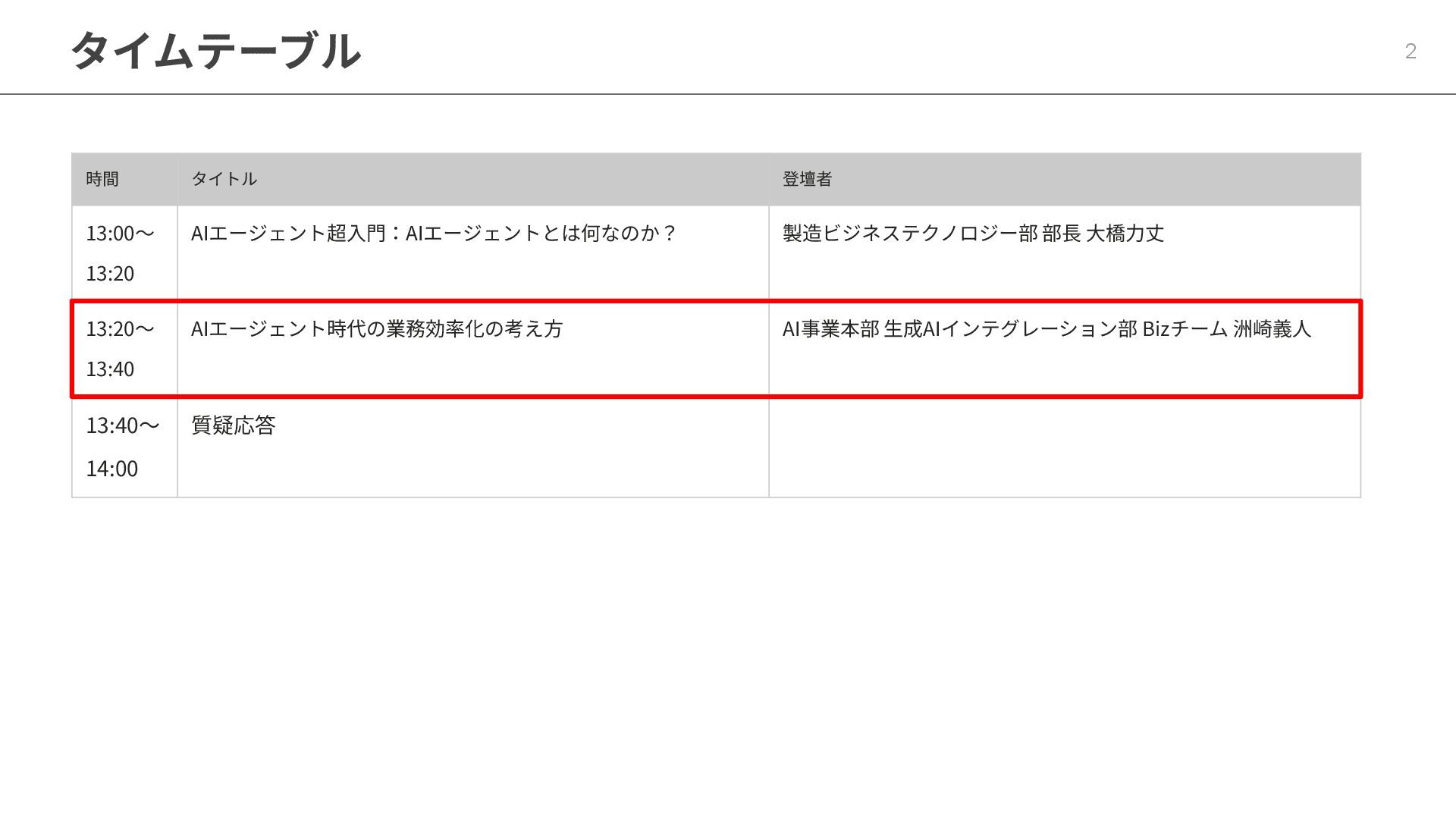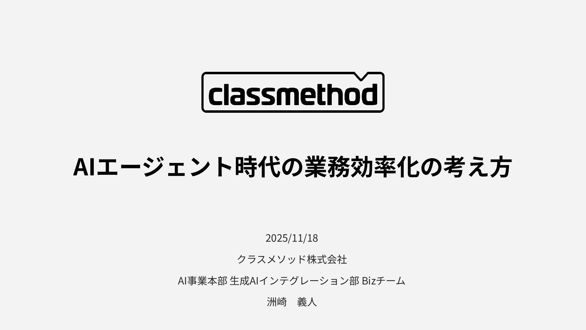 ◦ AWSソリューションアーキテクト • 2024年11⽉ AI事業本部 Bizチーム ◦ ⽣成AI営業‧事業開発‧研修講師など • その他 ◦ 2023 - 2024 Japan AWS Top Engineers ◦ 2023 - 2024 Japan AWS All Certifications Engineers ◦ 2025 AWS Community Builders (AI Engineering) ◦ AWSの知識地図 第2章 執筆 • 部署 ◦ AI事業本部 ⽣成AIインテグレーショ ン部 Bizチーム • 名前 ◦ 洲崎 義⼈ • 出⾝‧住まい ◦ 神奈川 / 福岡 • 最近の運動 ◦ キックボクシング ◦ ランニング