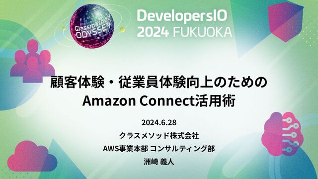 顧客体験‧従業員体験向上のための Amazon Connect活⽤術 2024.6.28 クラスメソッド株式会社 AWS事業本部 コンサルティング部 洲崎 義⼈