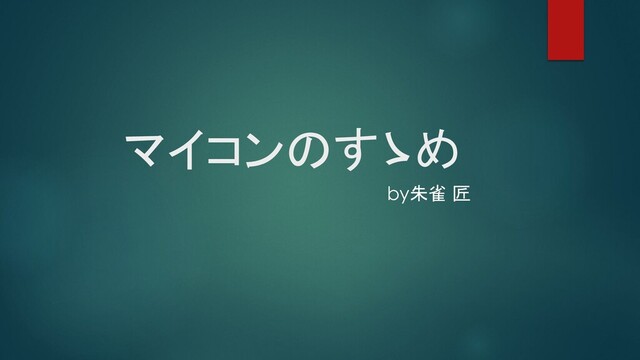 目次 1.今回のLTの目的 2.マイコンとは 3.出来ること 4.意外と簡単 5.メリット・デメリット 6.入門 7.まとめ