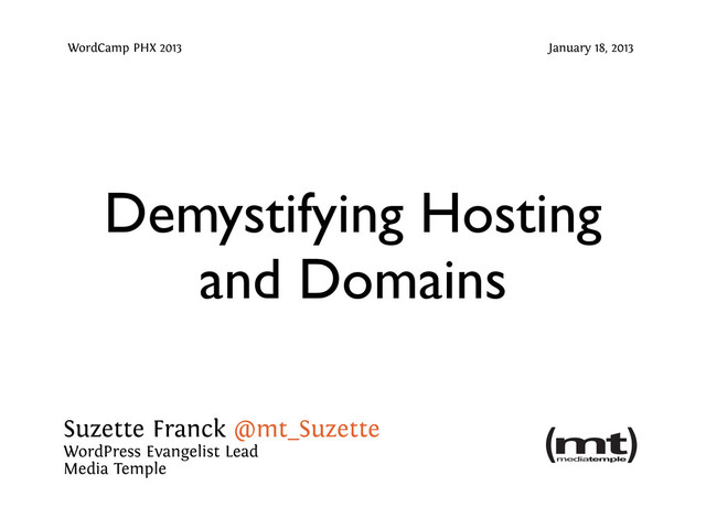 If you plan on having a self-hosted WordPress site, you will need to have your own domain name and hosting. A good domain name helps a visitor to find your content, while web hosting provides the necessary hardware that your website needs to run on the Internet. Both are necessary and represent some very important decisions that you will need to make when determining to have a website. This session will cover the basics of domain names, registration and configuration, the typical types of hosting that you can select from, the questions you need to ask a potential host when setting up your new site, and finally, how to point your domain name to your hosting provider of choice.