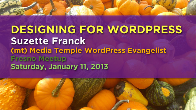 ★Born in Hollywood, California Native ★19+ Years Coding & Web Development ★Developed over 200 WordPress sites ★2013: 12 WordCamps, 8 states, 2 countries ★WordPress Podcast WPgirlieshow.com ★Reg. Contributor on WPwatercooler.com ★Hosted DradCast Episode 17 ★Blogs at: suzettefranck.com Follow me! @mt_Suzette