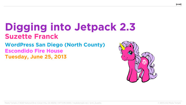 "Suzette Franck, the WordPress evangelist from MediaTemple, is going to be joining us this Tuesday night to talk about JetPack.