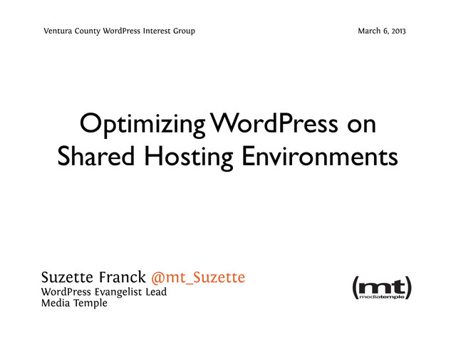 1. Suzette Franck @mt_Suzette WordPress Evangelist Lead Media Temple Optimizing WordPress