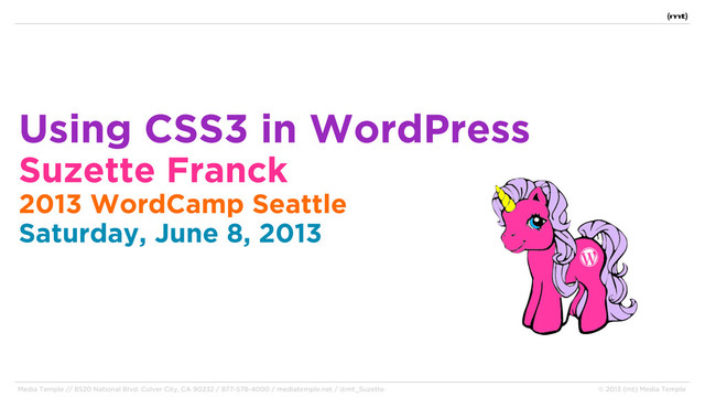 In my travels, I have discovered that there is not much documentation on using CSS3 specifically in WordPress. While not many of the new CSS3 modules have reached official recommendation by the W3C, support is very good across all of the latest browsers. This session will aim to inform, enlighten, and delight attendees with the right way to include CSS in your WordPress theme using child themes or a plugin such as Jetpack, and we will also cover some of the best new features of CSS3 that you can put to work right away. You should be familiar with HTML and have some basic WordPress and CSS knowledge to get the most benefit from this talk.
