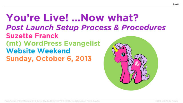 After your site goes live, you may think you are done, but it is just the beginning! To make the most of all the hard work that everyone put into creating the site, you need to make sure that processes are put in place to regularly maintain the site. I call this process, “Post Launch Setup”, which includes task lists such as setting up security monitors, backup scheduling, configuration up of stats and caching programs, automating post broadcasts, activating Jetpack, testing contact forms, and prepping your site for search engine optimization. Most of these tasks can only be performed after a site has gone live and DNS has fully propagated. This session will outline the steps I have personally used to successfully launch over 200 WordPress sites.