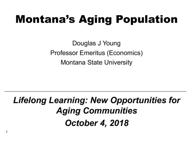 Dr. Douglas Young, MSU Wonderlust Council president and Montana State University professor emeritus (economics), presented an overview of Montana demographics at the Lifelong Learning Symposium on Oct. 4, 2018.