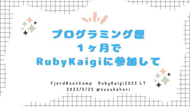 プログラミング歴 プログラミング歴 プログラミング歴 1ヶ月で 1ヶ月で 1ヶ月で RubyKaigiに参加して RubyKaigiに参加して RubyKaigiに参加して F