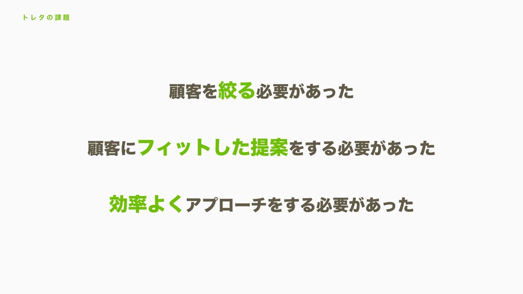 ސ٬ΛߜΔඞཁ͕͋ͬͨ ސ٬ʹϑΟοτͨ͠ఏҊΛ͢Δඞཁ͕͋ͬͨ τ Ϩ λ ͷ ՝