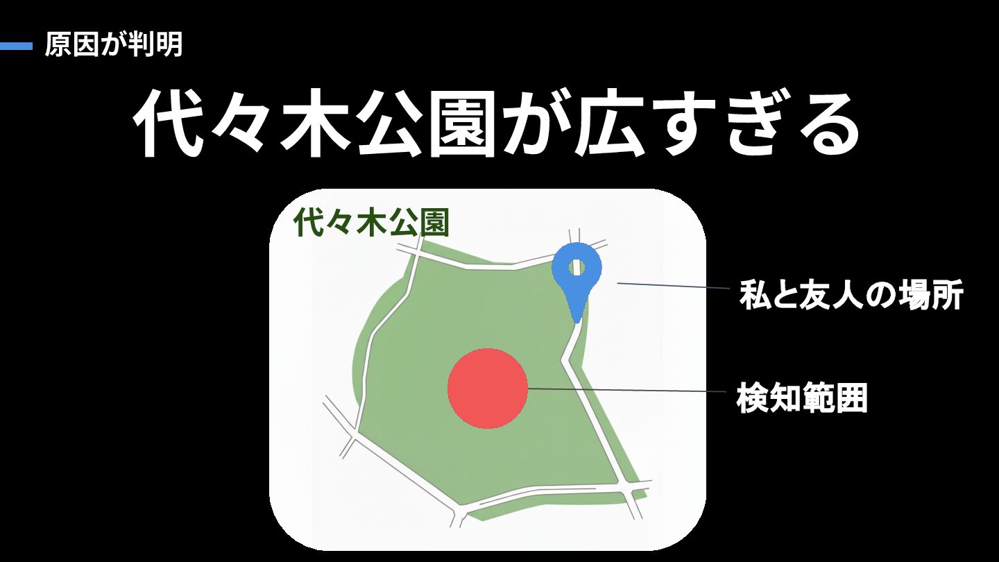 「代々木公園の中にいるのに判定されない!バグってない?」