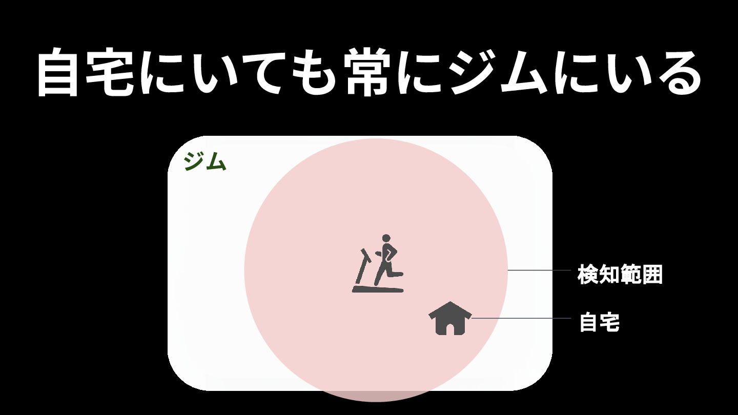 開発は順調でした。近所のジムで何度テストしても完璧に動作。「位置判定範囲200mで実装完了!」そう思っていました。