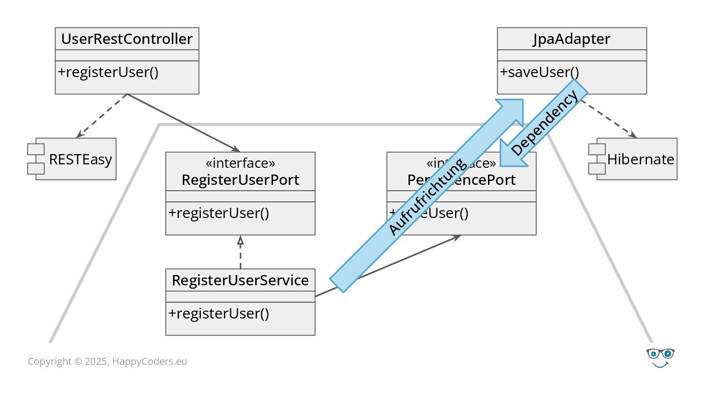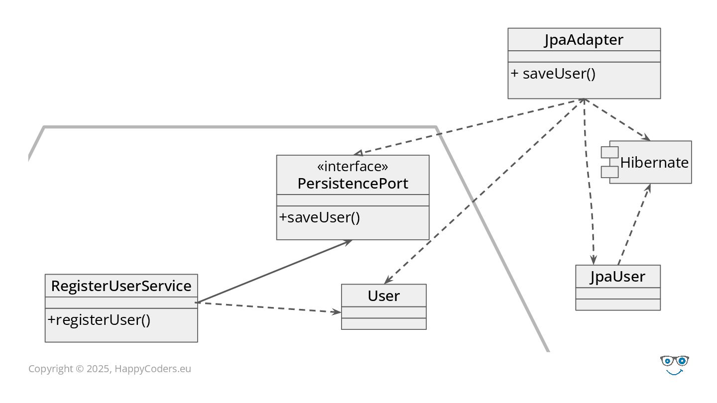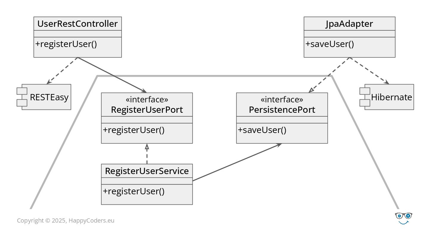 Hexagonale Architektur rückt die Geschäftslogik ins Zentrum, und technische Details werden als Adapter hinter Schnittstellen (Ports) isoliert. Fachlicher und technischer Code kann so unabhängig voneinander entwickelt und getestet werden.