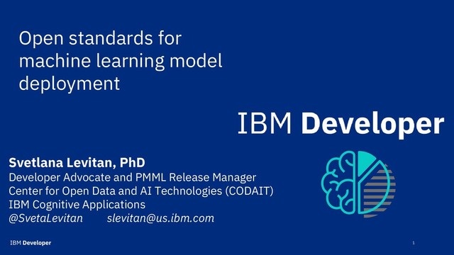 for Open Data and AI Technologies (CODAIT) IBM Cognitive Applications @SvetaLevitan [email protected] 1 Open standards for machine learning model deployment