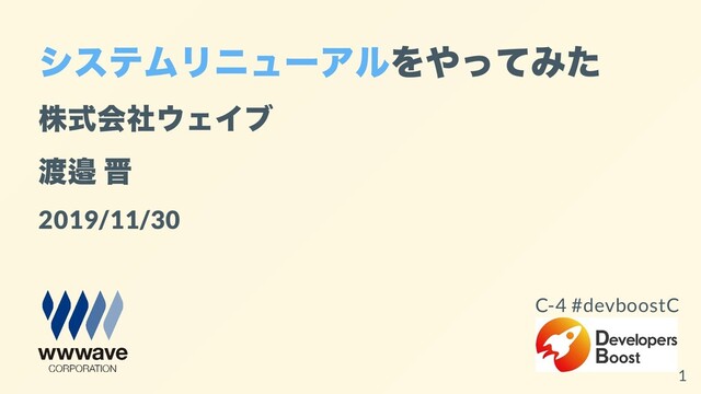 システムリニューアルをやってみた 株式会社ウェイブ 渡邉 晋 2019/11/30 C-4 #devboostC 1