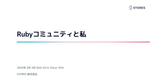 STORES 株式会社 Rubyコミュニティと私 2024年 3月 2日 Rails Girls Tokyo 16th