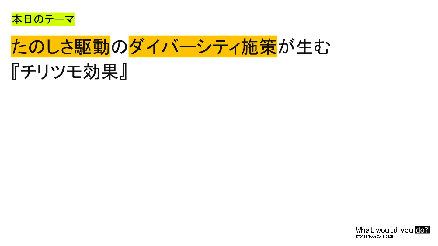 たのしさ駆動のダイバーシティ施策が生む 『チリツモ効果』 本日のテーマ