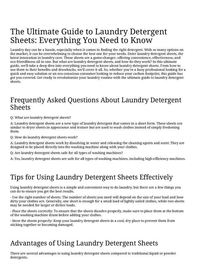 Laundry day can be a hassle, especially when it comes to finding the right detergent. With so many options on the market, it can be overwhelming to choose the best one for your needs. Enter laundry detergent sheets, the latest innovation in laundry care. These sheets are a game-changer, offering convenience, effectiveness, and eco-friendliness all in one. But what are laundry detergent sheets, and how do they work? In this ultimate guide, we'll take a deep dive into everything you need to know about laundry detergent sheets. From how to use them to their benefits and drawbacks, we'll cover it all. So, whether you're a busy professional looking for a quick and easy solution or an eco-conscious consumer looking to reduce your carbon footprint, this guide has got you covered. Get ready to revolutionize your laundry routine with the ultimate guide to laundry detergent sheets.