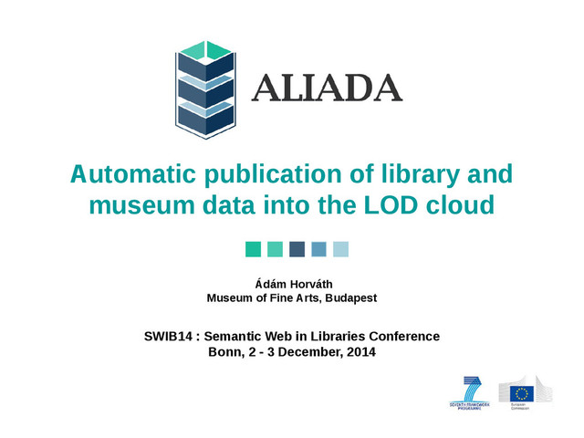 data into the LOD cloud Ádám Horváth – MFAB 14 ALIADA is also a project http://aliada-project.eu • ALIADA: Automatic publication under LInked DAta Paradigm of library Data • Project supported by the European Commission under the 7th frame program. • From November 2013 up to October 2015 (24 months)
