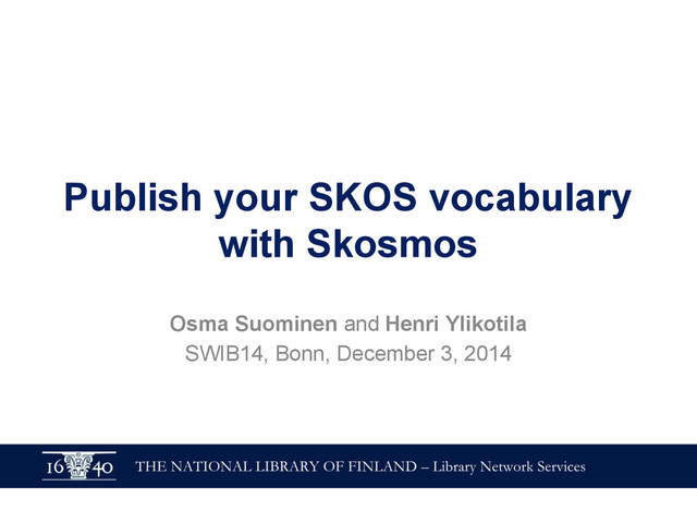 Authors: Osma Suominen and Henri Ylikotila (The National Library of Finland, Finland)