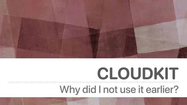 across all devices • Scales with your user base • No auth required to save personal data • Notifications setup made easy with CKSubscriptions • One of the best in class infrastructure • Uploading images, video, audio or any data, is so easy. I got 99 problems, but a dependency ain’t one “ - Jay-Z