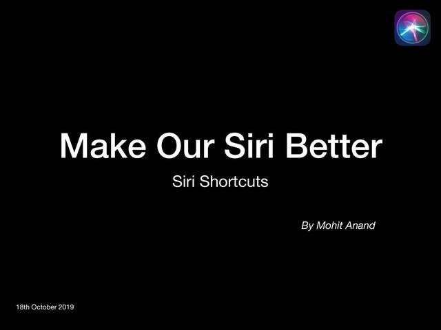 a NSUserActivity object every time user performs an action for which you want to create a shortcut. • Make your NSUserActivity, eligible for Siri Shortcut by a simple flag introduced in iOS 12.0. This will tell Siri that it can suggest this user activity as a shortcut to user.