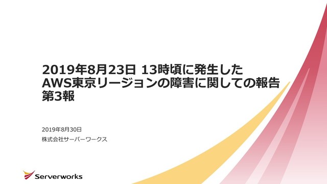impaired EC2 instances and EBS volumes experiencing degraded performance have now recovered. We continue to work on recovery for the remaining EC2 instances and EBS volumes that are affected by this issue. This issue affects EC2 instances and EBS volumes in a single Availability Zone in the AP-NORTHEAST-1 Region. 【RDS】Aug 23, 4:46 AM PDT The majority of instance connectivity issues have now recovered. We continue to work on recovery for the remaining instance connectivity issues within a single Availability Zone in the AP-NORTHEAST-1 Region. SHDによるアナウンス EC2 18:39 RDS 20:46 上記時刻にそれぞれに於いて、⼤部分の復旧がアナウンスされております。当社ほとんどのお客様 環境に於いて、復旧が確認出来ております。(※監視の正常性確認作業は継続されている場合があ ります) 当社⾒解 SHD: https://status.aws.amazon.com/