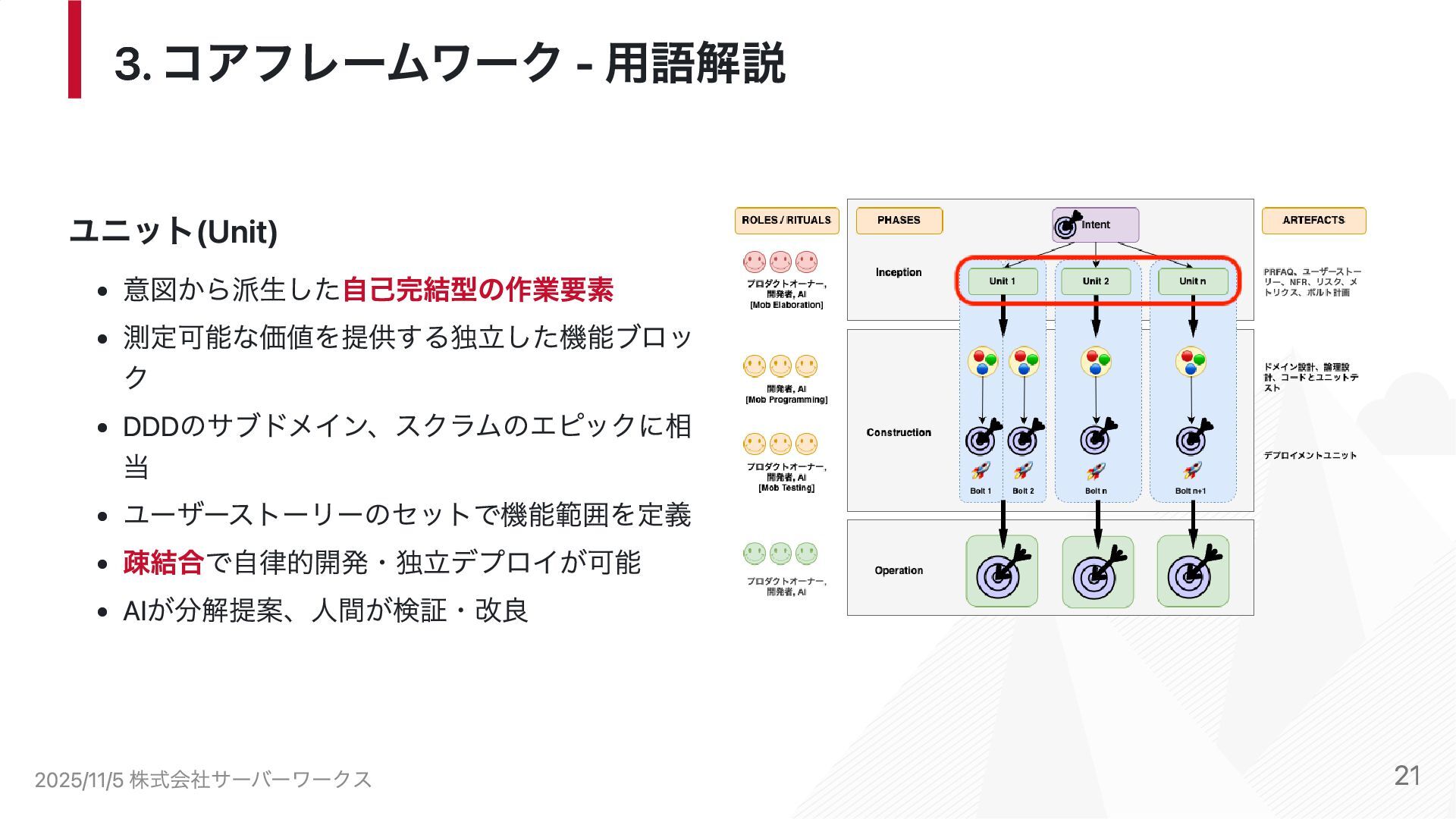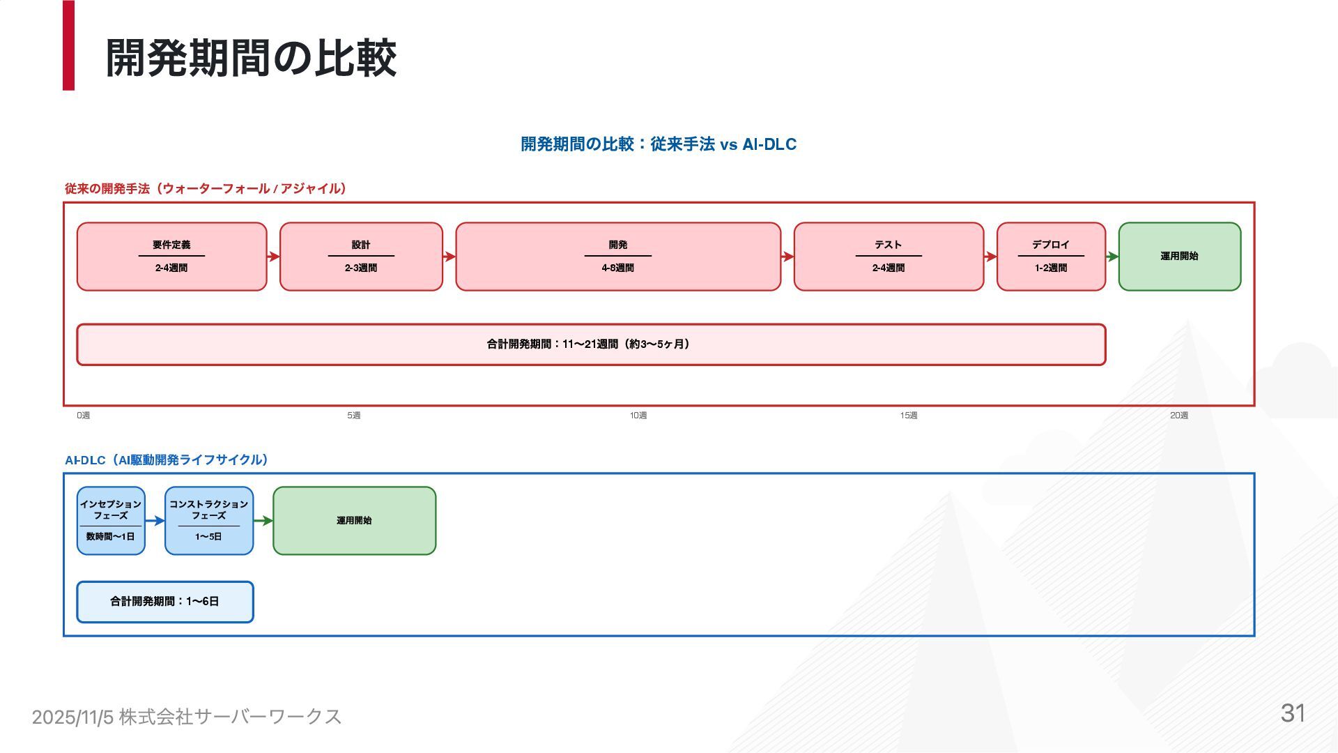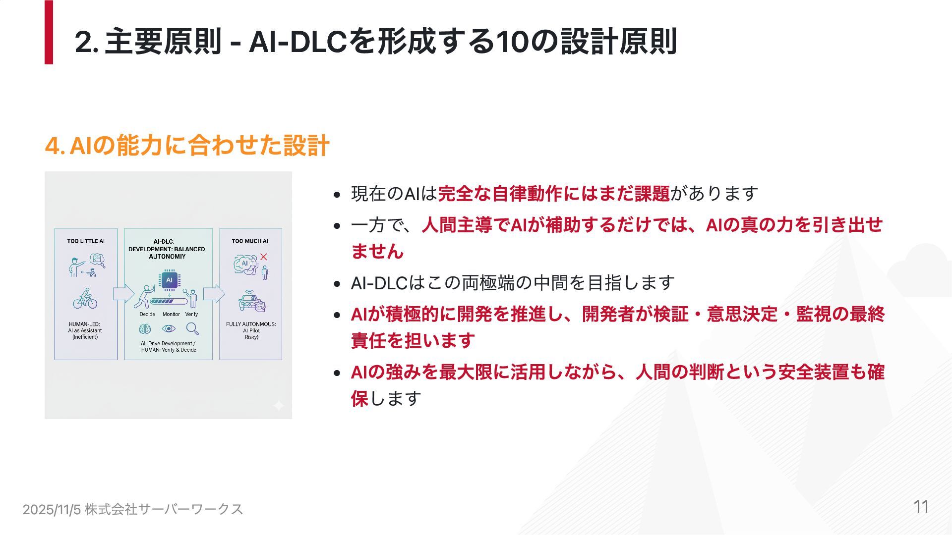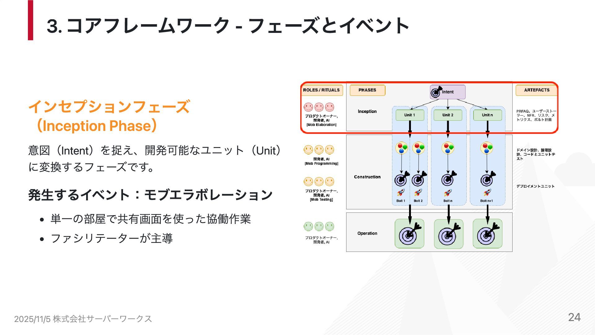 株式会社サーバーワークスの社内勉強会でAI駆動開発ライフサイクル(AI-DLC)や仕様駆動開発についての発表をしたときに作成した資料です。