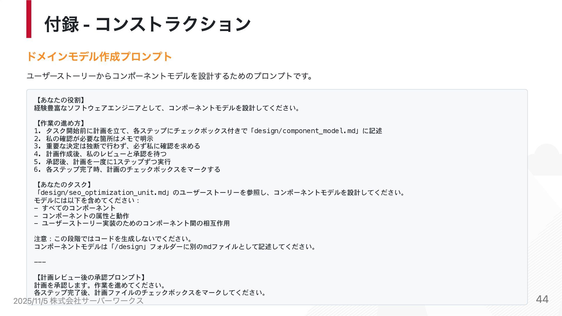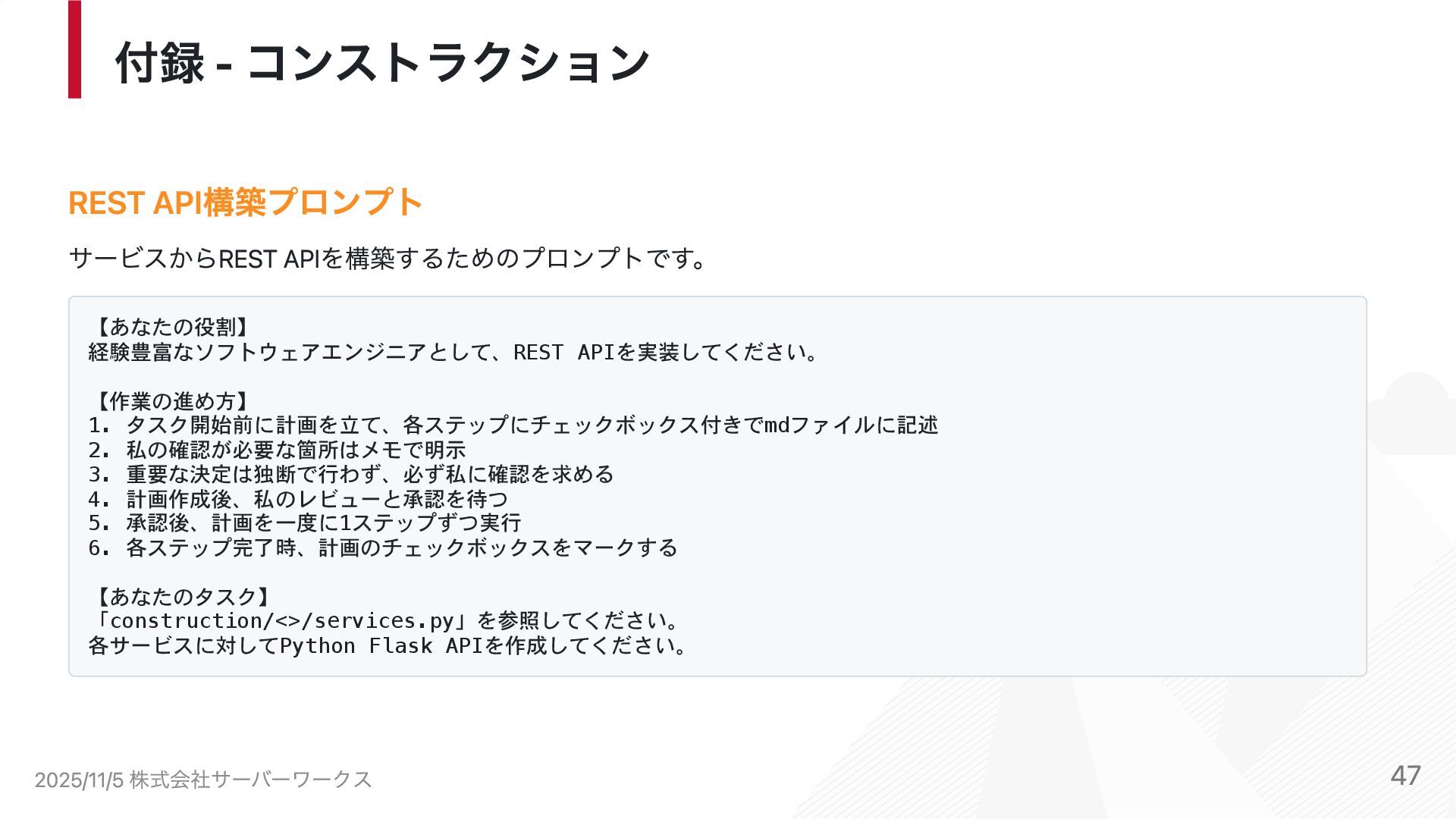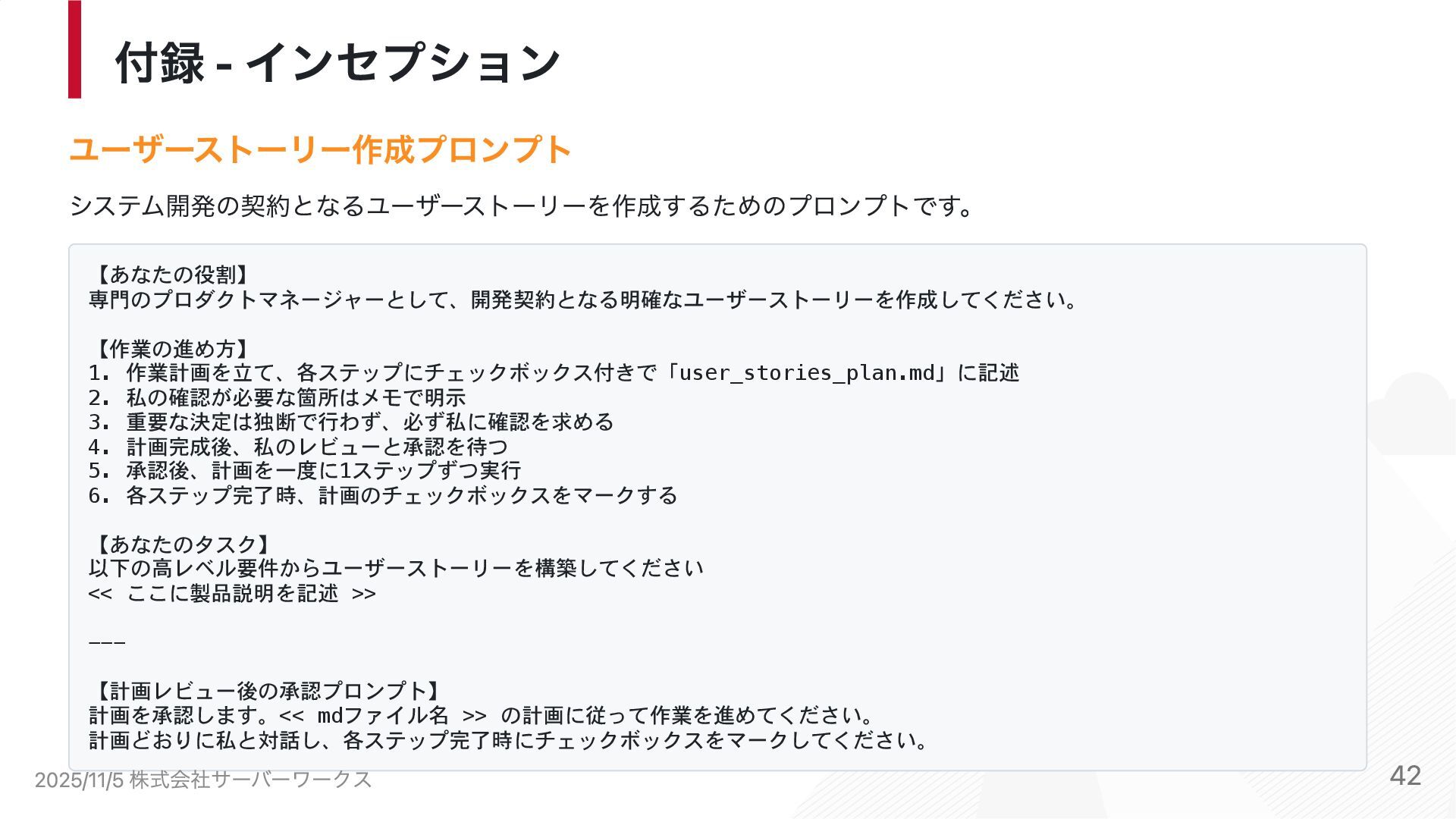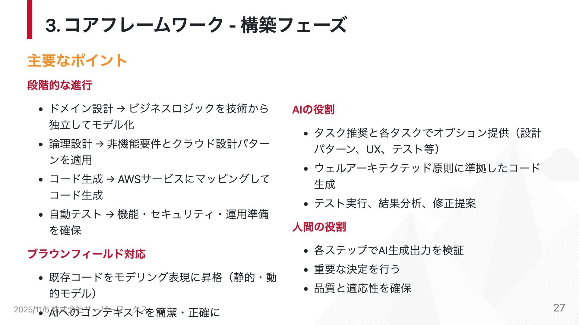 株式会社サーバーワークスの社内勉強会でAI駆動開発ライフサイクル(AI-DLC)や仕様駆動開発についての発表をしたときに作成した資料です。
