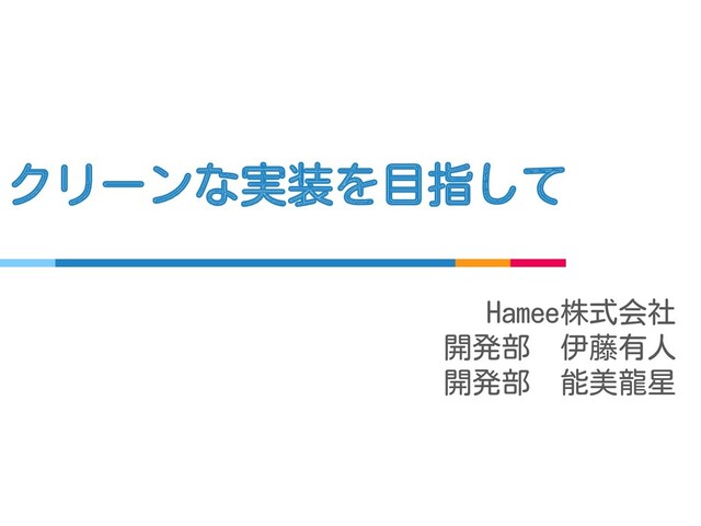 クリーンな実装を目指して Hamee株式会社 開発部 伊藤有人 開発部 能美龍星