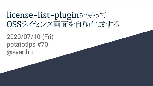 license-list-pluginを使って OSSライセンス画面を自動生成する 2020/07/10 (Fri) potatotips #70 @syarihu