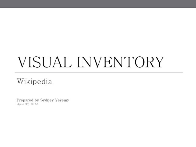 VISUAL INVENTORY Wikipedia Prepared by Sydney Yeremy April 3rd, 2014