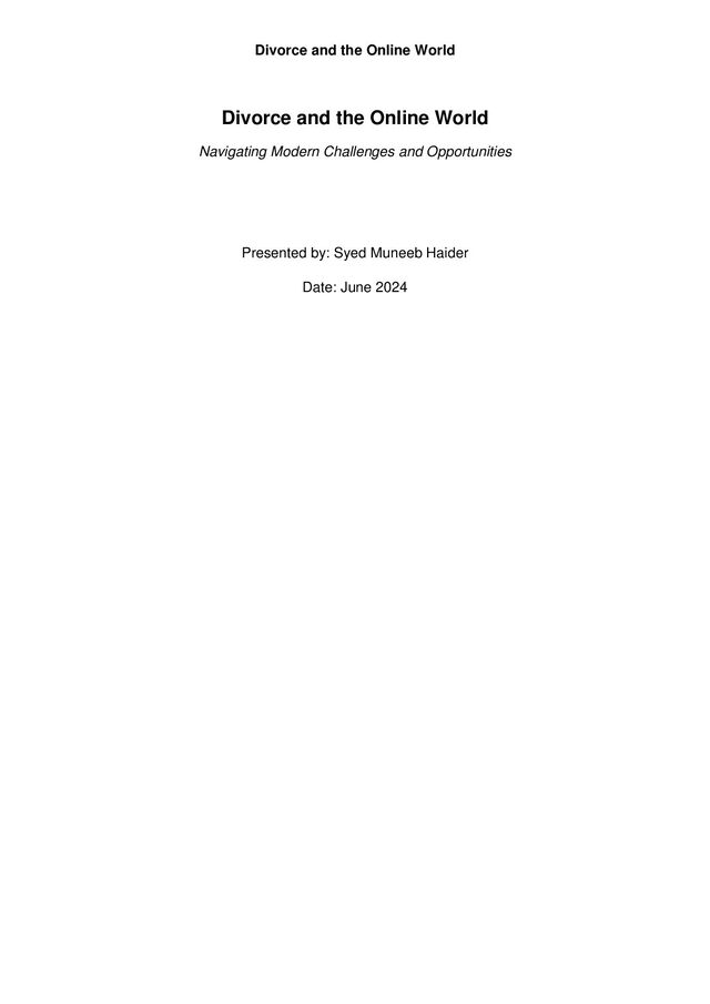 Discover the comprehensive guide on "Divorce and the Online World," exploring the intersection of digital life and divorce. This presentation offers valuable insights, case studies, and practical advice for navigating divorce in the digital age. For more resources, visit Divorce Matters Online.