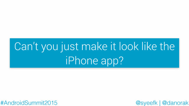 Android design began to diverge from iOS design #AndroidSummit2015 @syeefk