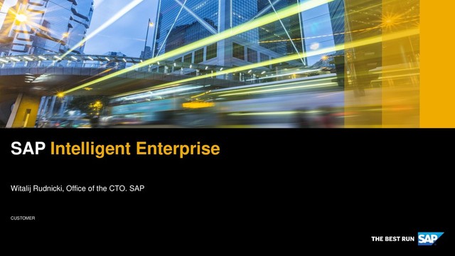company. All rights reserved. ǀ Intelligent Suite: Deliver intelligence across value chains Out-of-the-box integration leveraging SAP Cloud Platform, the SAP Analytics Cloud solution, and a common data foundation with SAP HANA and SAP Data Hub Best-in-class UX with consistent experience across the entire portfolio Easy to extend, allowing customers and partners to customize solutions quickly Intelligence embedded in the applications making the workflows smarter Modular, making it easy to consume and cost-effective to operate. Key Building Blocks