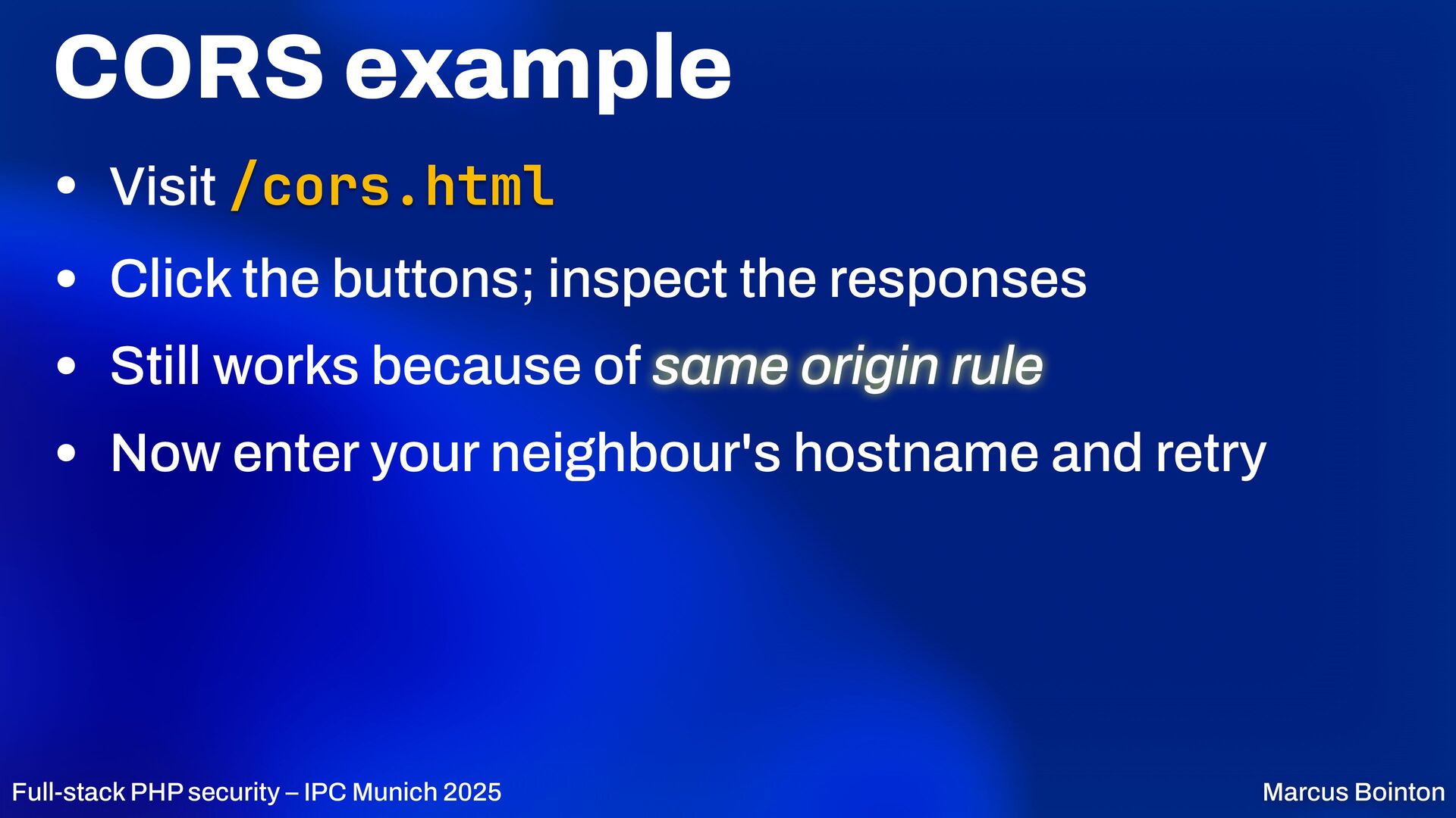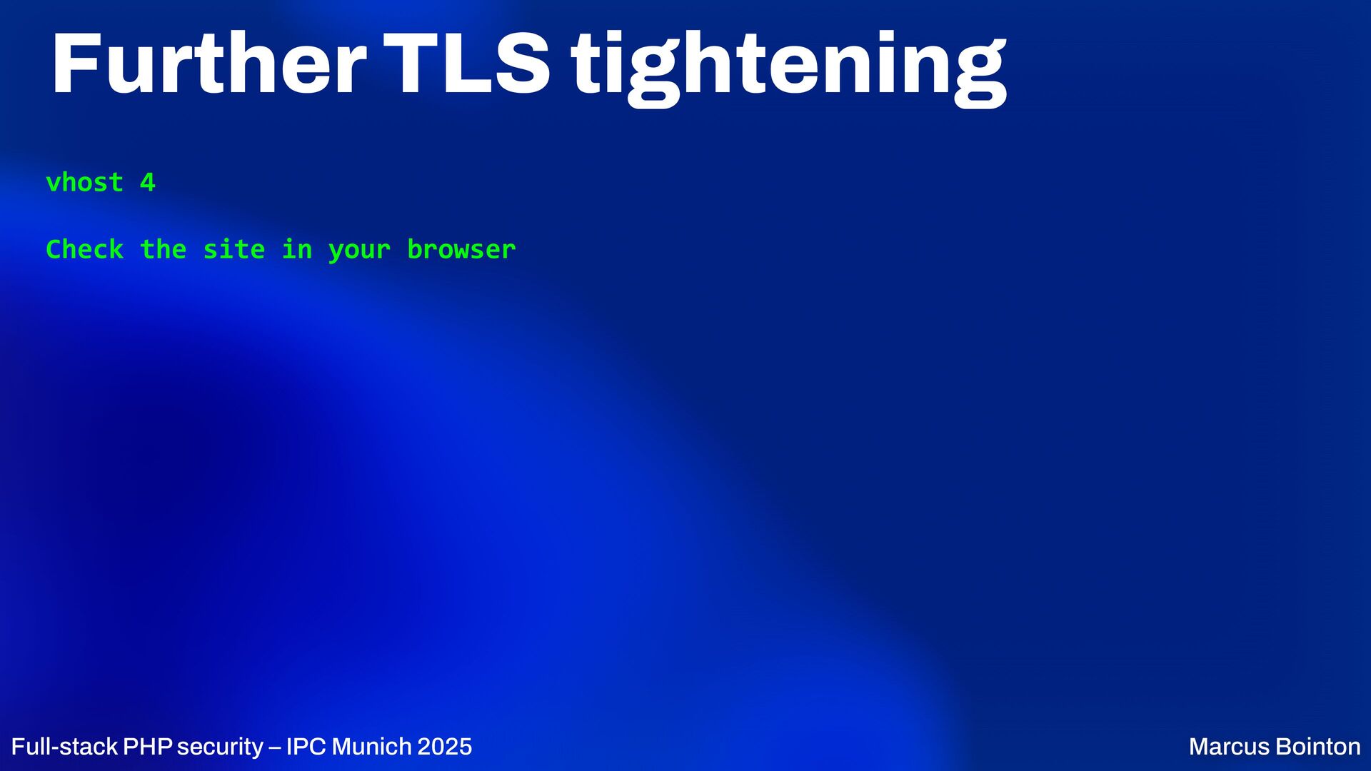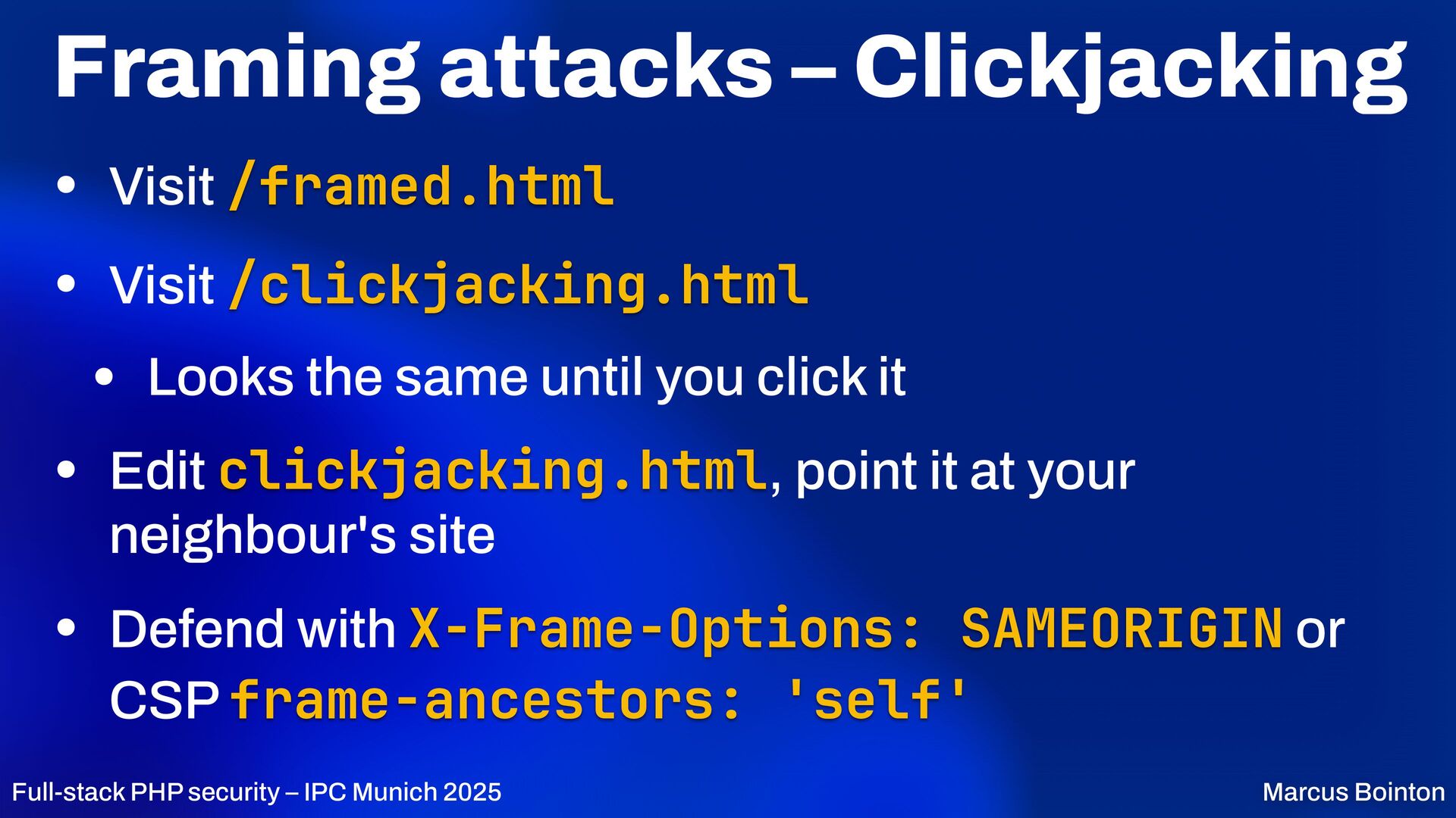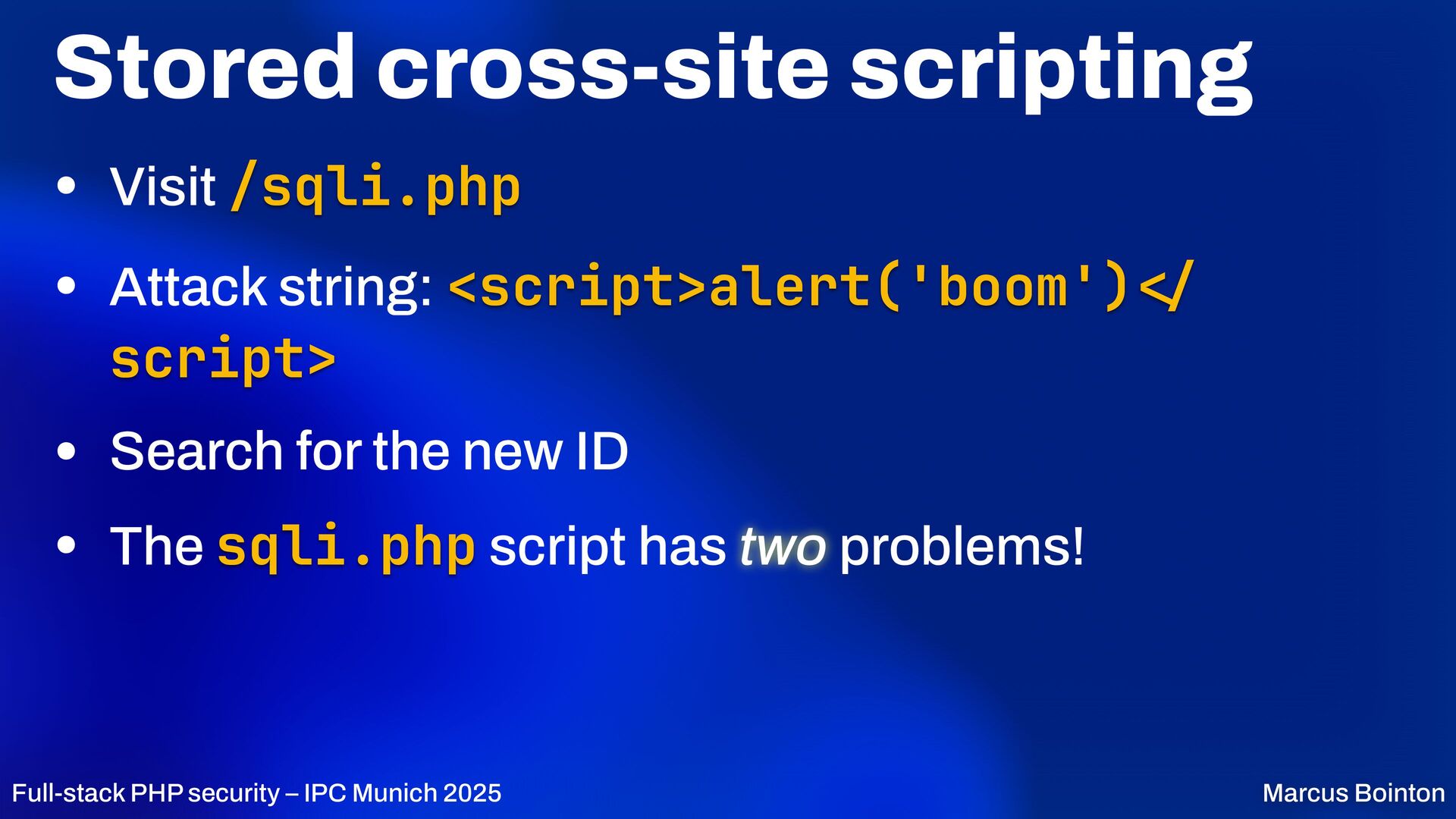In this 1-day workshop, we will set up a server and work through a set of examples in vanilla PHP to discuss and demonstrate security problems and solutions at every layer of the deployment stack, from cloud infrastructure all the way through firewalls, SSH & TLS config, SQLi, validation & escaping, and XSS.