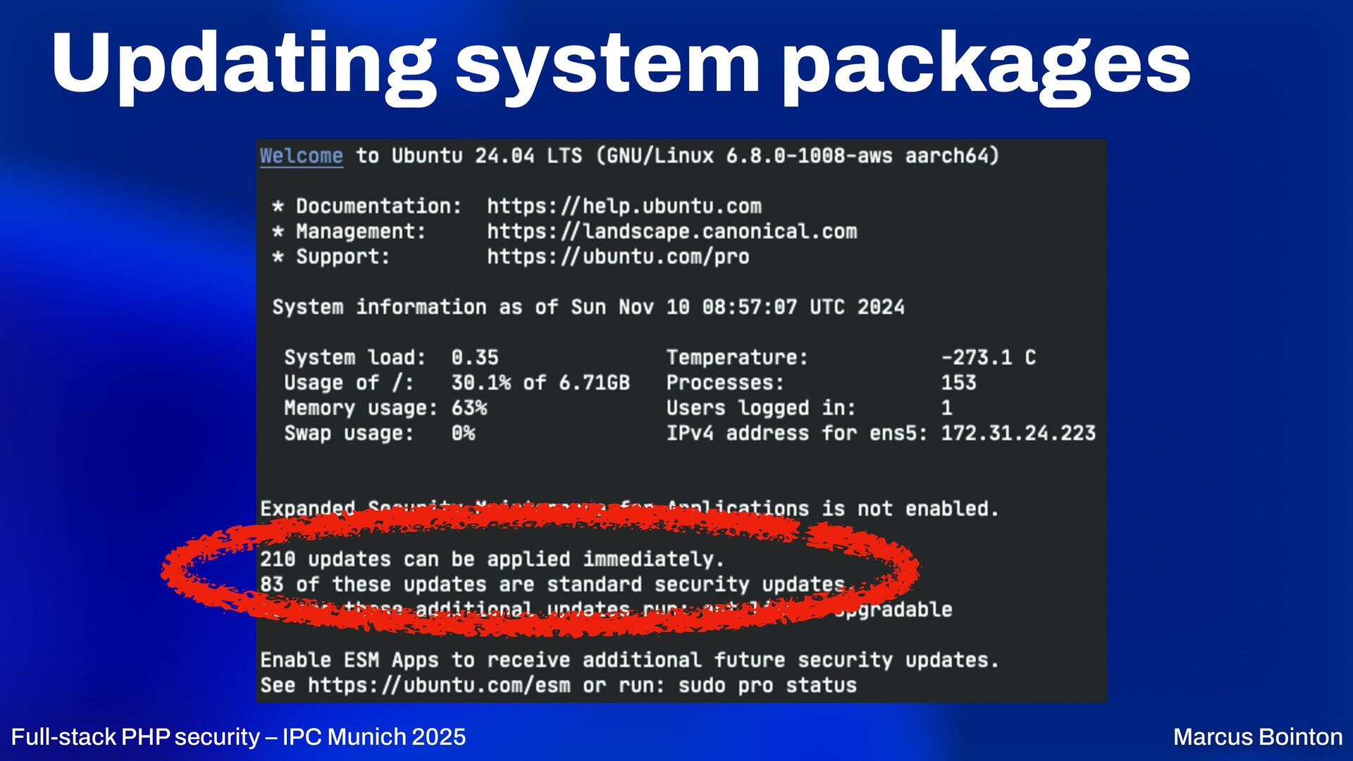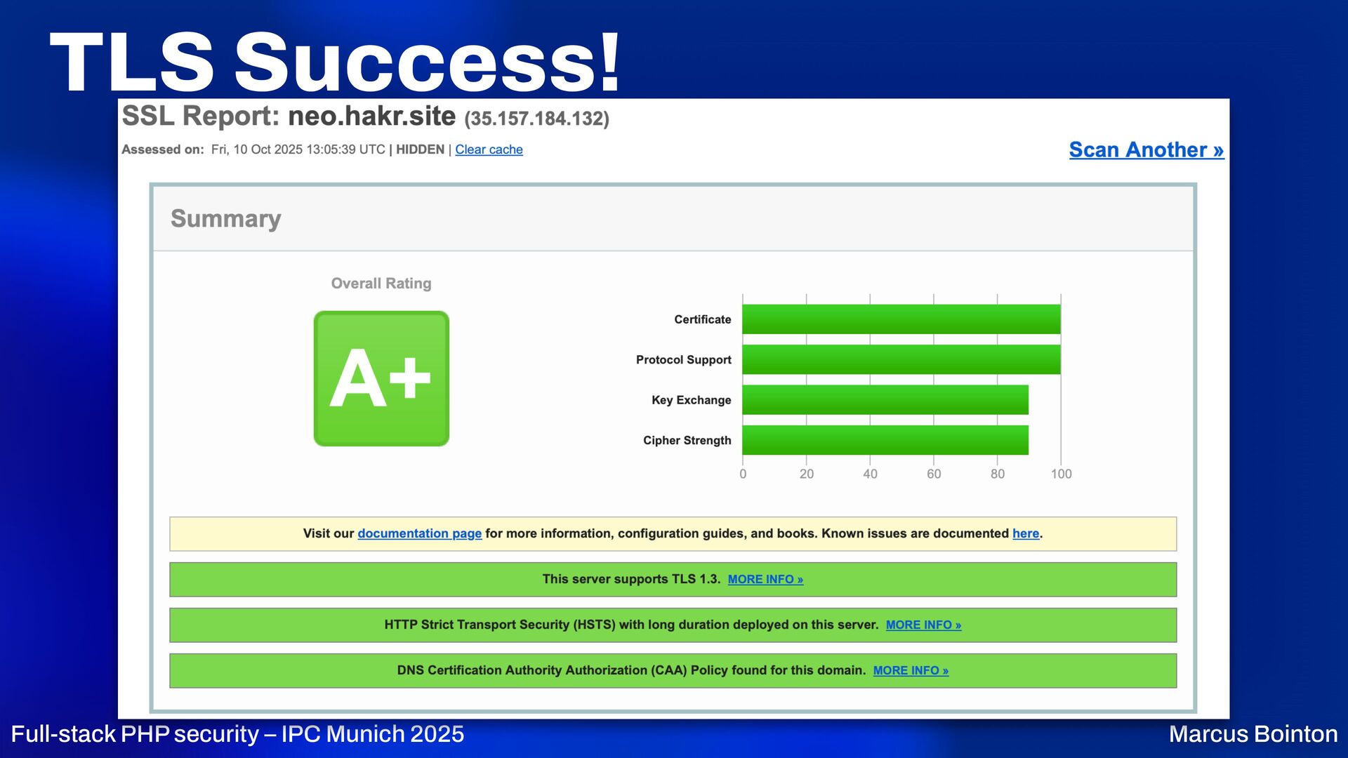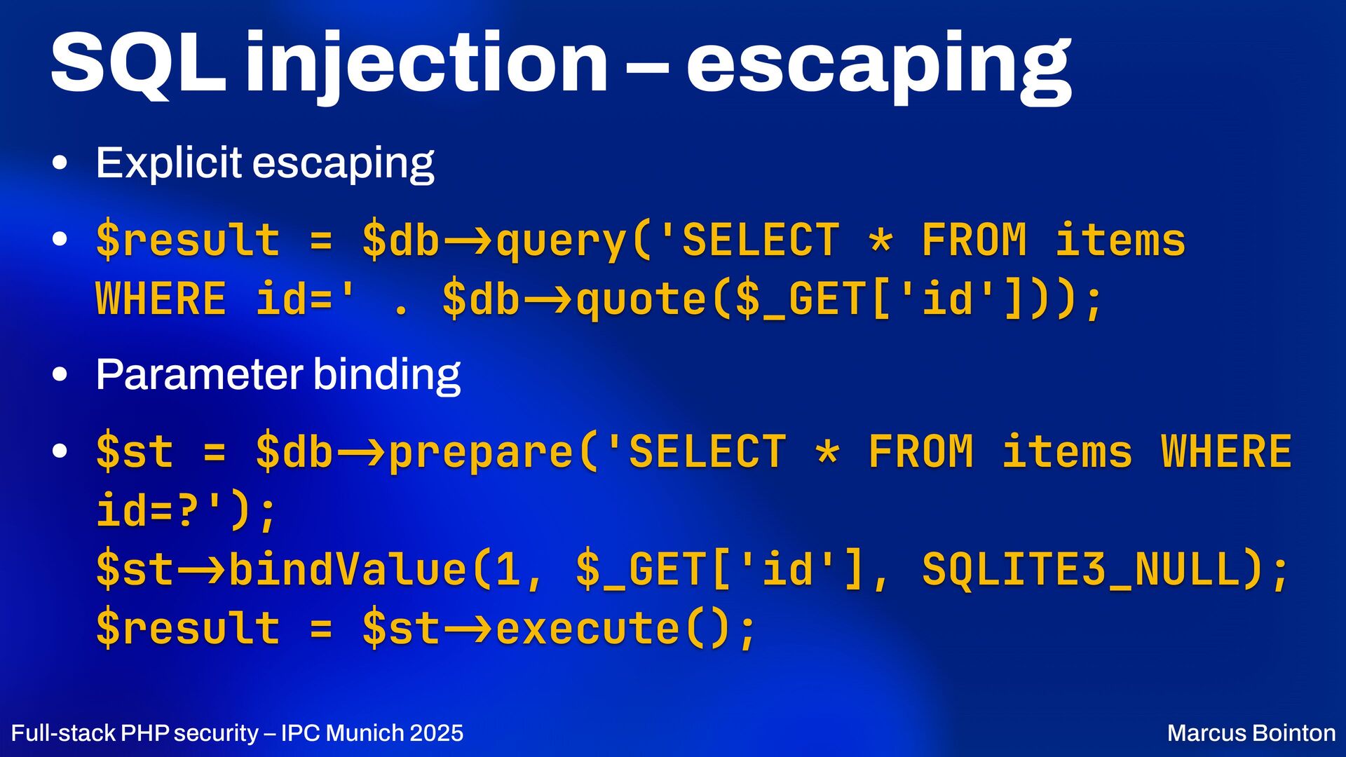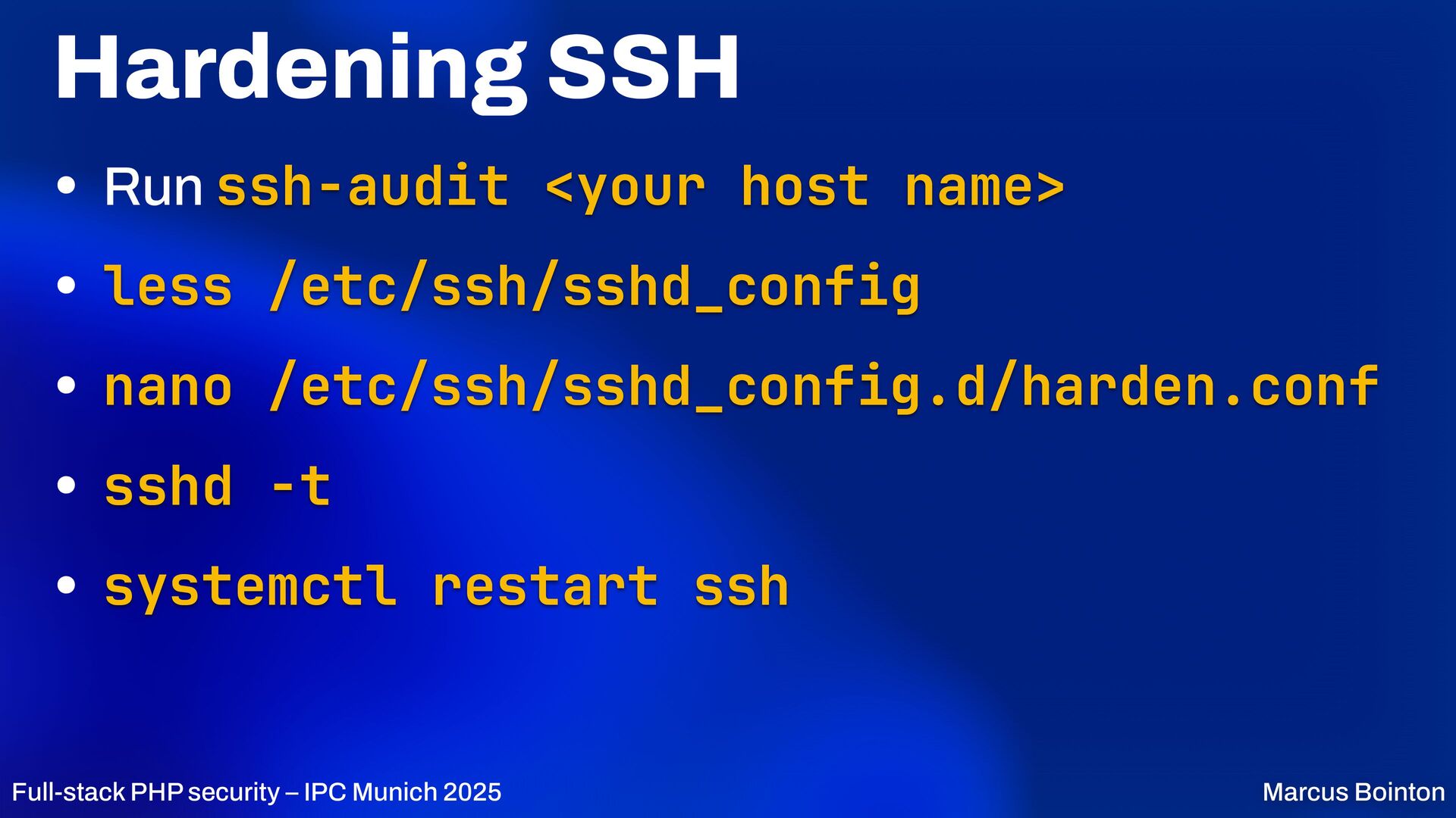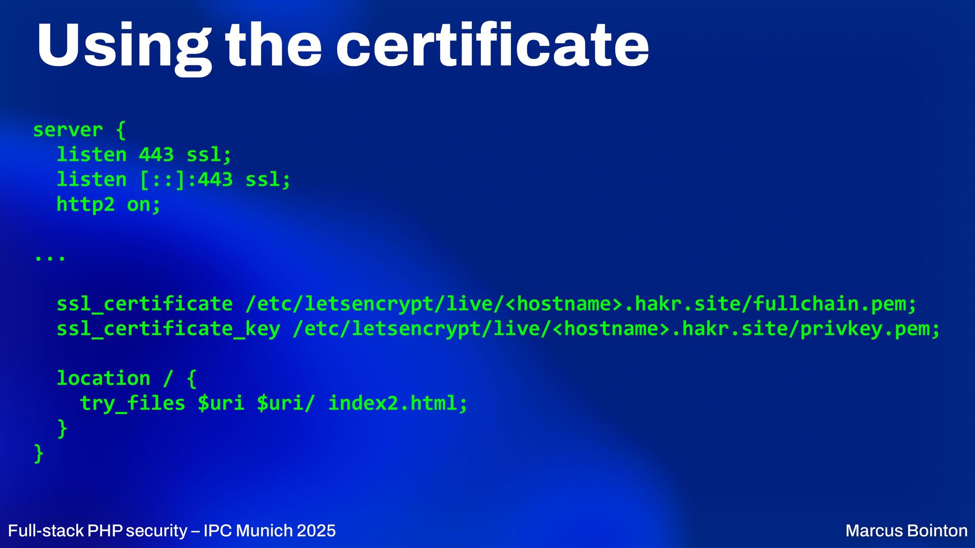 In this 1-day workshop, we will set up a server and work through a set of examples in vanilla PHP to discuss and demonstrate security problems and solutions at every layer of the deployment stack, from cloud infrastructure all the way through firewalls, SSH & TLS config, SQLi, validation & escaping, and XSS.
