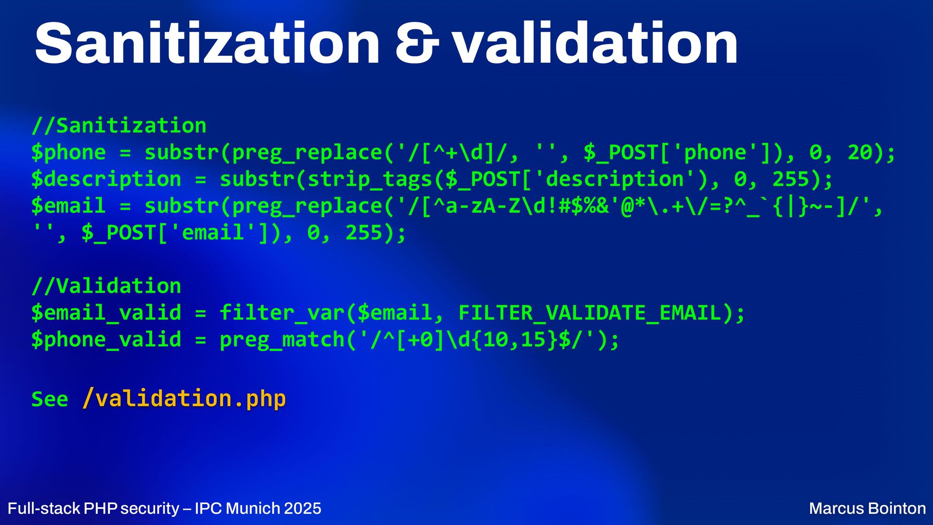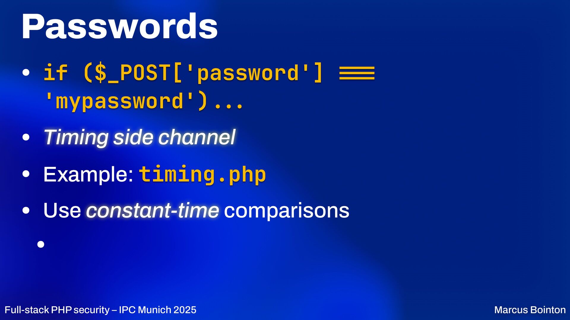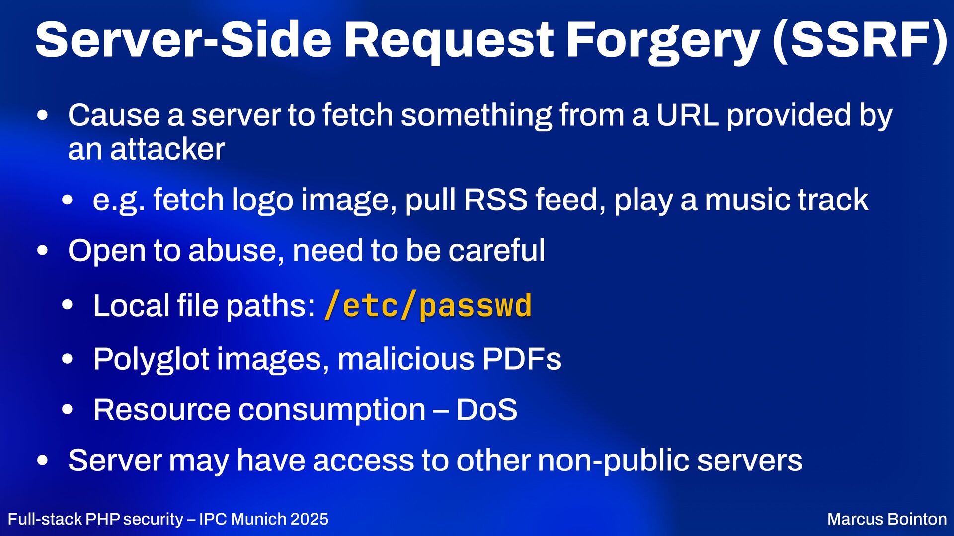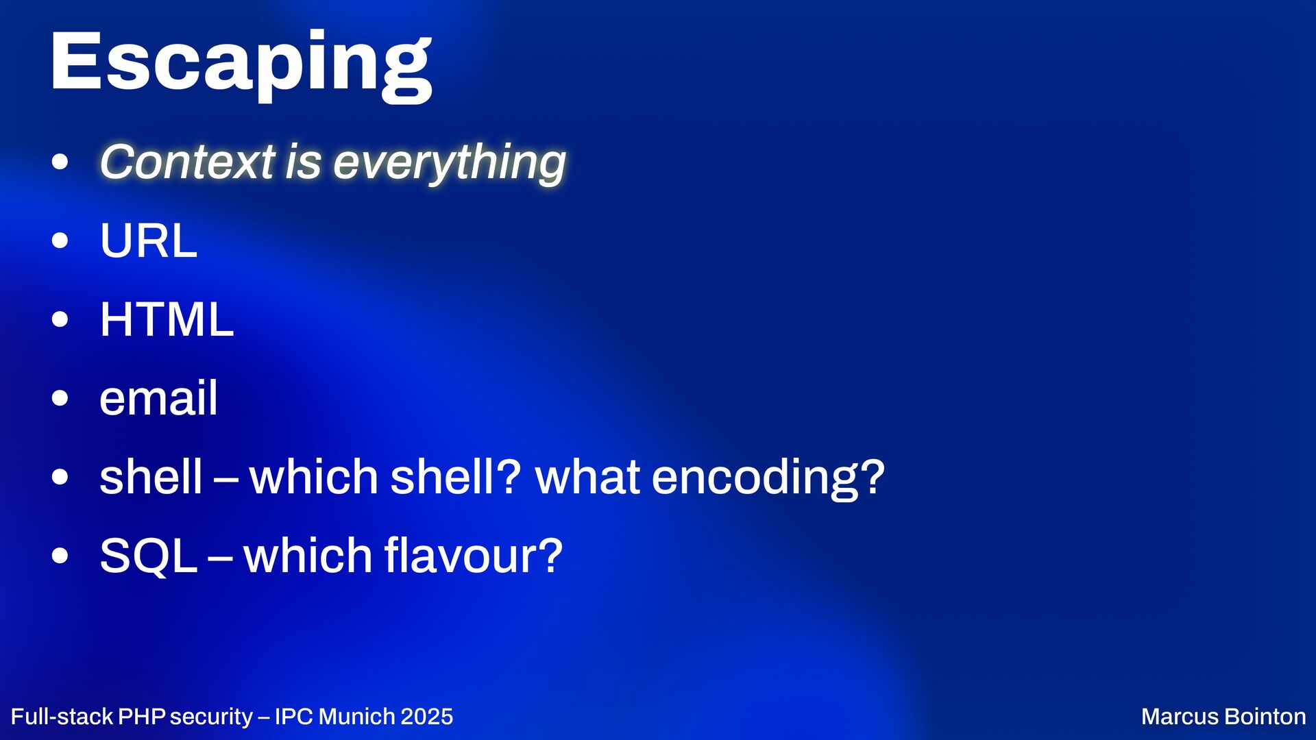 In this 1-day workshop, we will set up a server and work through a set of examples in vanilla PHP to discuss and demonstrate security problems and solutions at every layer of the deployment stack, from cloud infrastructure all the way through firewalls, SSH & TLS config, SQLi, validation & escaping, and XSS.