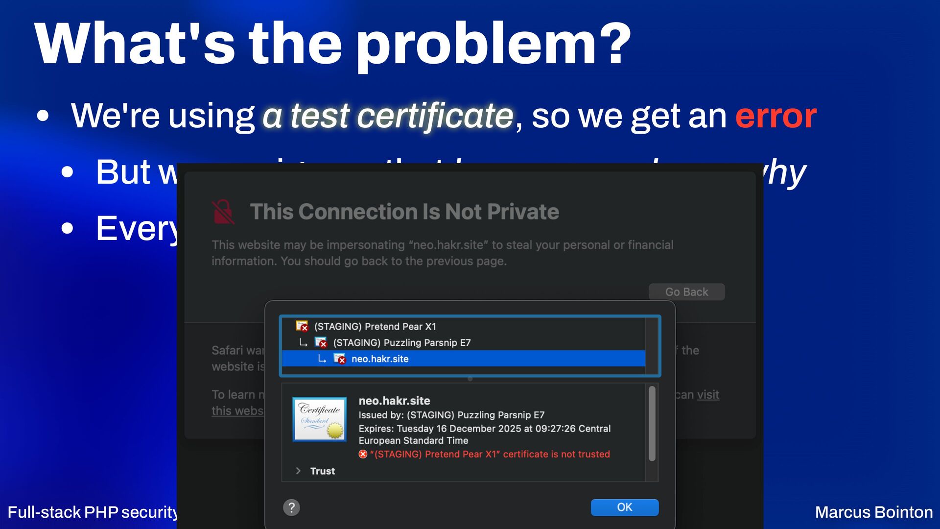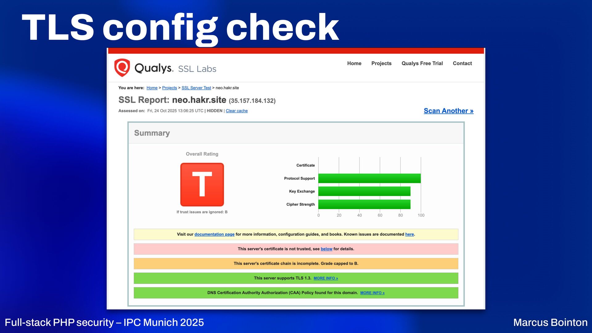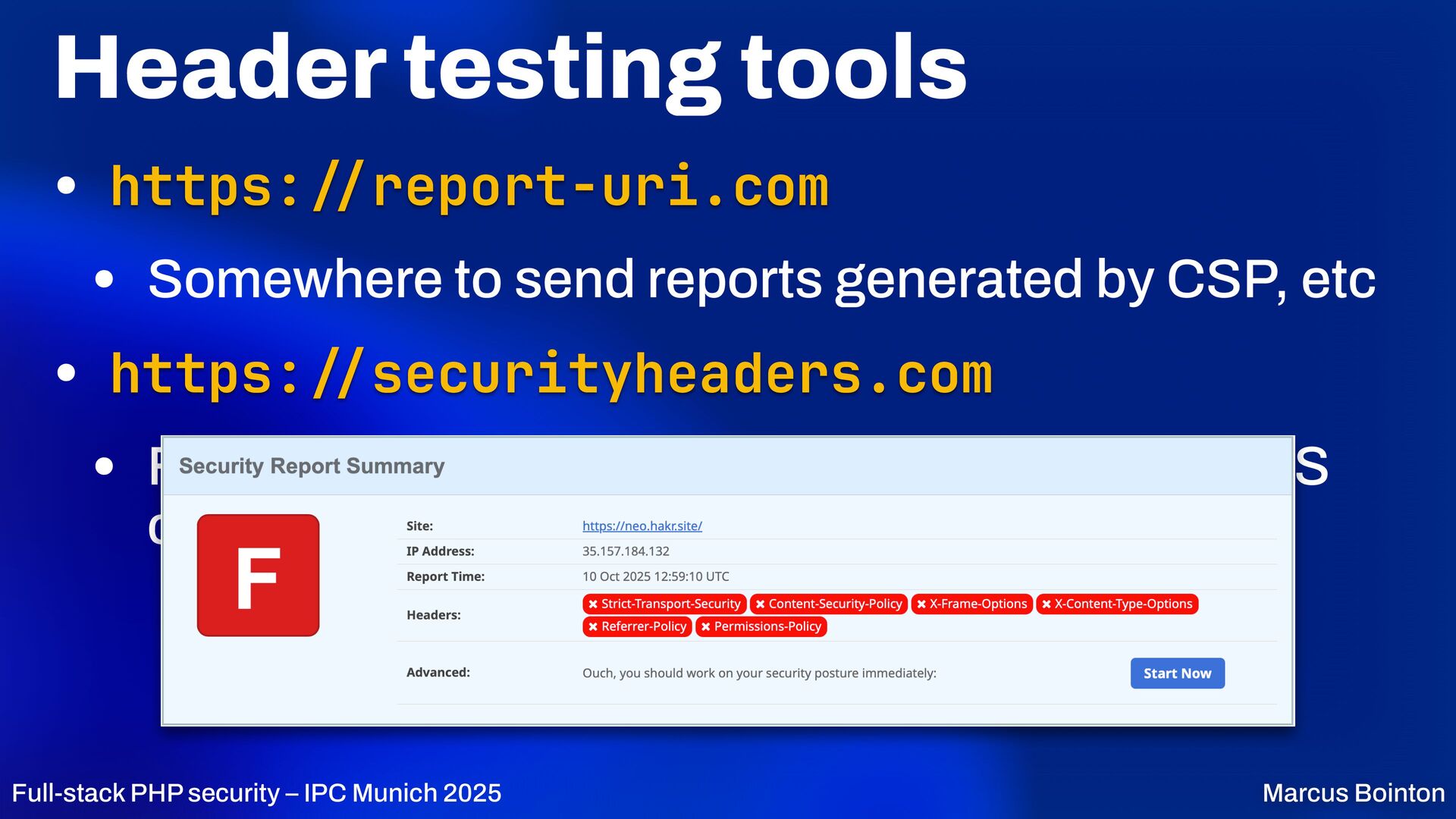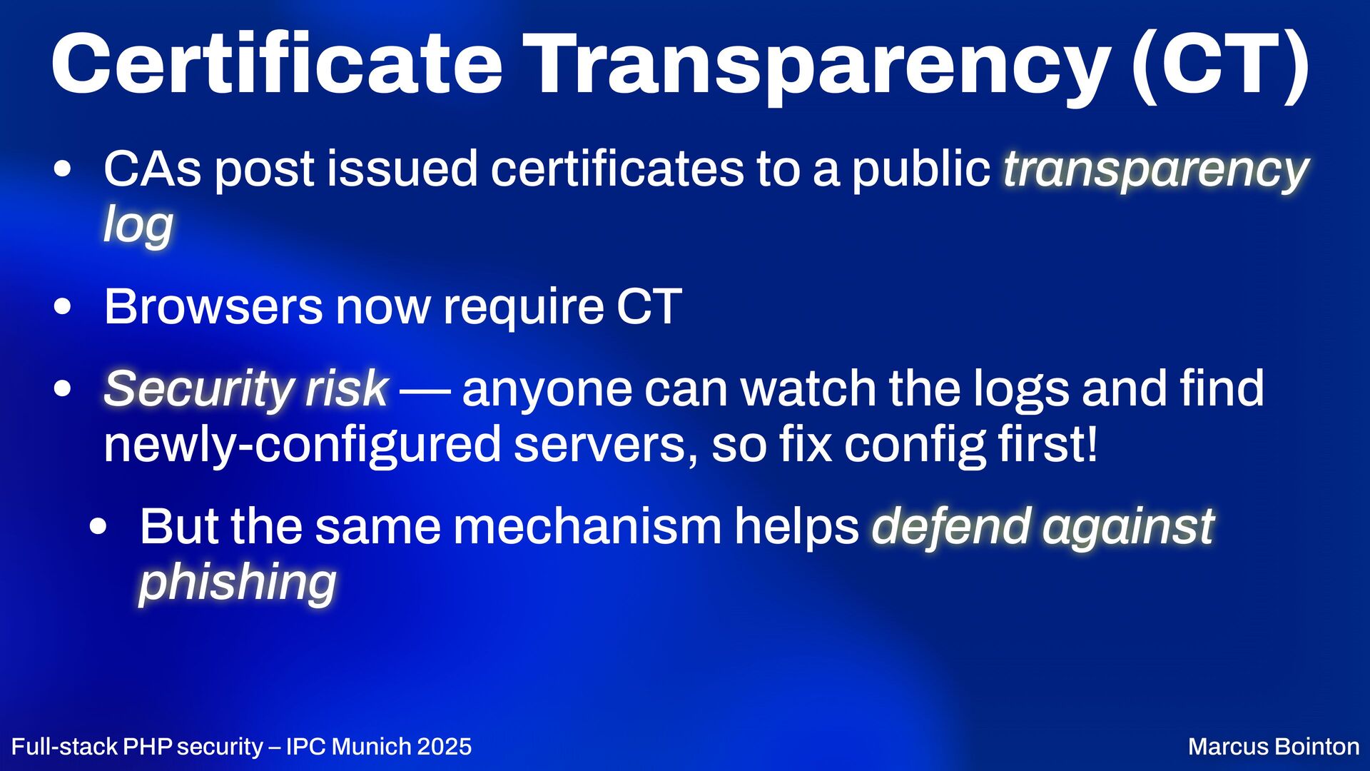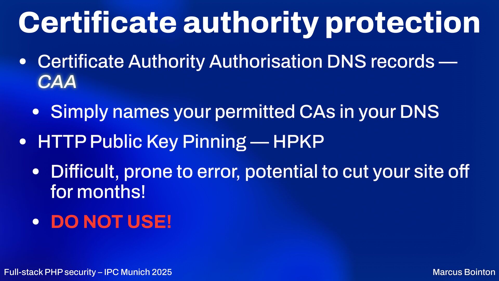 In this 1-day workshop, we will set up a server and work through a set of examples in vanilla PHP to discuss and demonstrate security problems and solutions at every layer of the deployment stack, from cloud infrastructure all the way through firewalls, SSH & TLS config, SQLi, validation & escaping, and XSS.