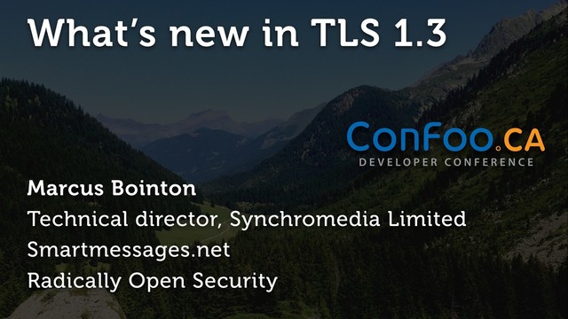 TLS encryption is an important part of websites, service and app deployment, and plays a vital role in protecting data in transit. TLS 1.2 has been around since 2008, and it's being replaced by the excitingly-named TLS 1.3. This talk will give you a rundown on the shortcomings of TLS 1.2 and earlier versions, how and why 1.3 changes things, and what changes you may need to make in your deployments to take advantage of the 1.3 enhancements.