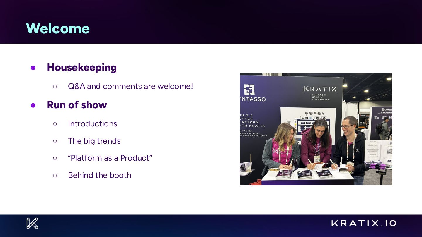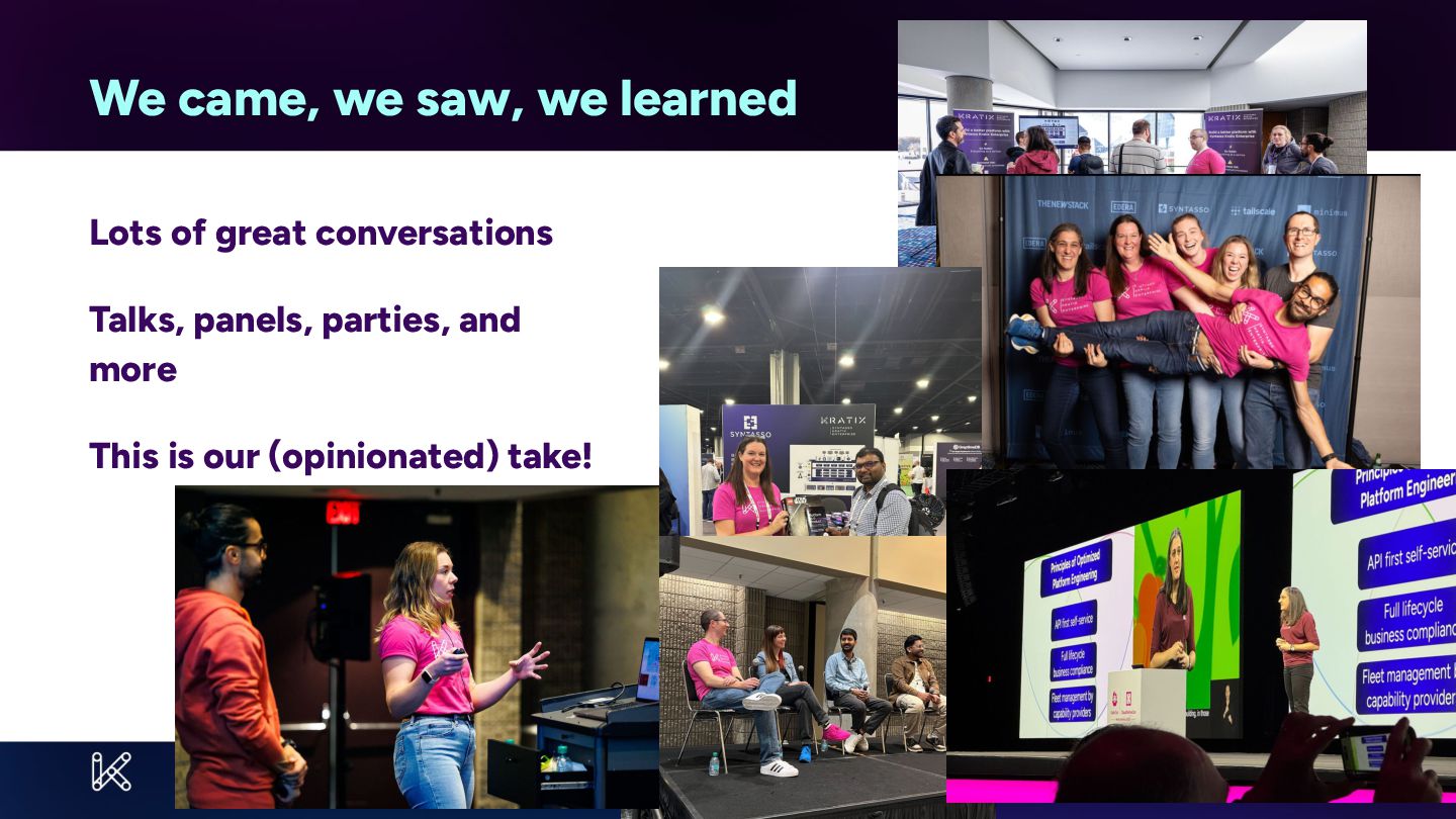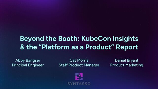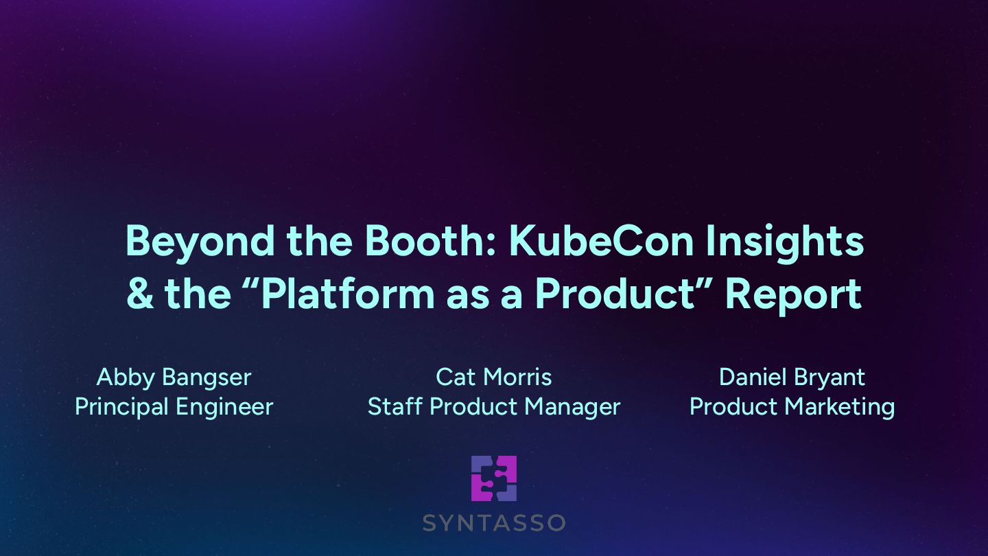 Beyond the Booth brings together Syntasso’s Abby Bangser, Daniel Bryant, and Cat Morris for a candid, practical, and forward-looking discussion about what they learned at KubeCon 2025 and how those insights connect to the newly released Platform as a Product report.