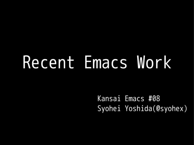 Recent Emacs Work Kansai Emacs #08 Syohei Yoshida(@syohex)