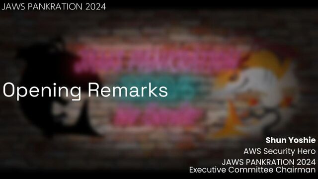 rights reserved. © 2023, Amazon Web Services, Inc. or its affiliates. All rights reserved. Opening Remarks Shun Yoshie AWS Security Hero Security-JAWS