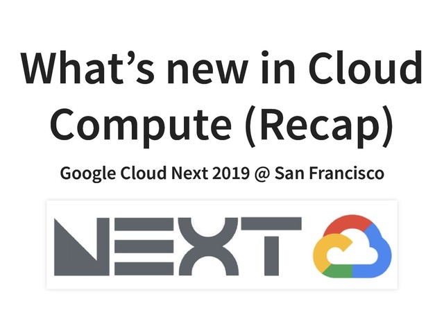 Compute (Recap) Google Cloud Next 2019 @ San Francisco Google Cloud Next 2019 @ San Francisco