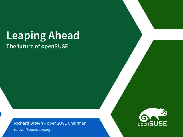 a promise by any participating organisation to develop, deliver, or market a product. It is not a commitment to deliver any material, code, or functionality, and should not be relied upon in making purchasing decisions. openSUSE makes no representations or warranties with respect to the contents of this document, and specifically disclaims any express or implied warranties of merchantability or fitness for any particular purpose. The development, release, and timing of features or functionality described for openSUSE products remains at the sole discretion of openSUSE. Further, openSUSE reserves the right to revise this document and to make changes to its content, at any time, without obligation to notify any person or entity of such revisions or changes. All openSUSE marks referenced in this presentation are trademarks or registered trademarks of SUSE LLC, in the United States and other countries. All third-party trademarks are the property of their respective owners. License This slide deck is licensed under the Creative Commons Attribution-ShareAlike 4.0 International license. It can be shared and adapted for any purpose (even commercially) as long as Attribution is given and any derivative work is distributed under the same license. Details can be found at https://creativecommons.org/licenses/by-sa/4.0/ Credits Template Richard Brown [email protected] Design & Inspiration openSUSE Design Team http://opensuse.github.io/branding- guidelines/
