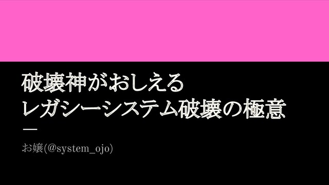 破壊神がおしえる レガシーシステム破壊の極意 お嬢(@system_ojo)
